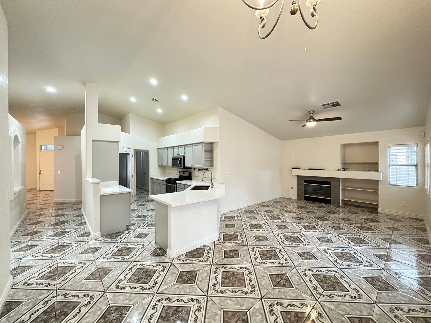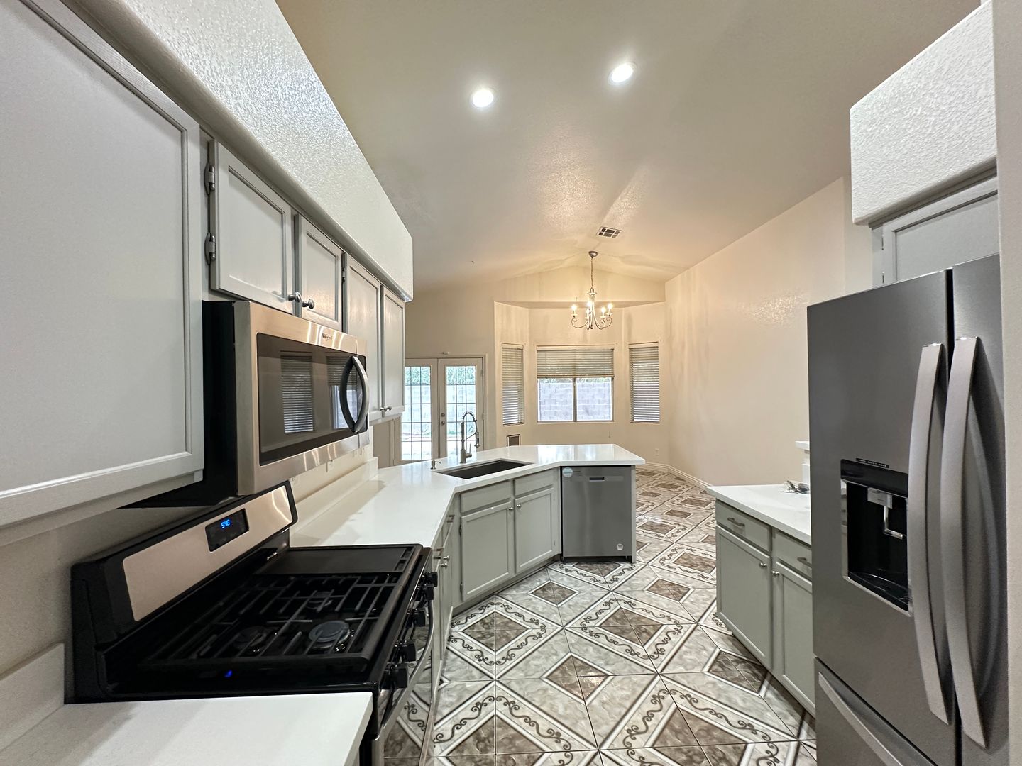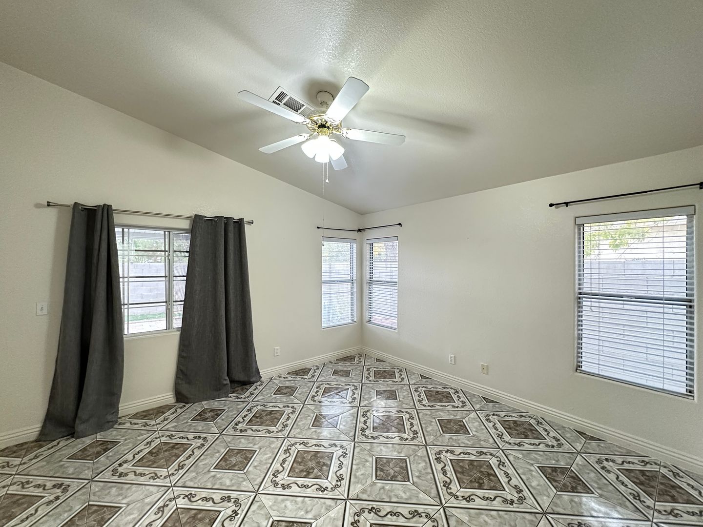 Single-story home with 3 bedrooms and 2 bathrooms. Features tile flooring throughout—NO CARPET! Equipped with ceiling fans and stainless steel appliances. Low maintenance front and backyards. Price includes $50 for trash and sewer.