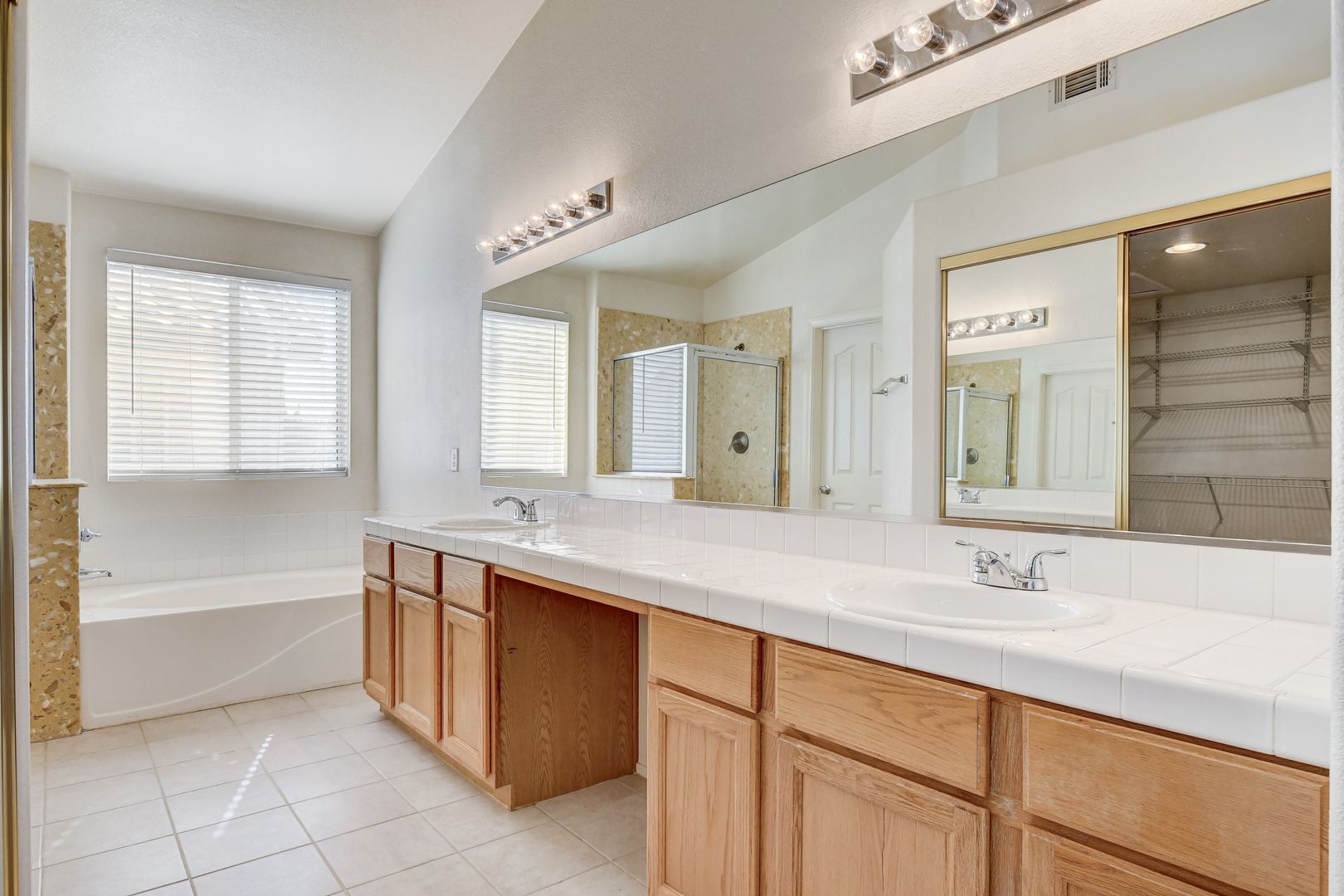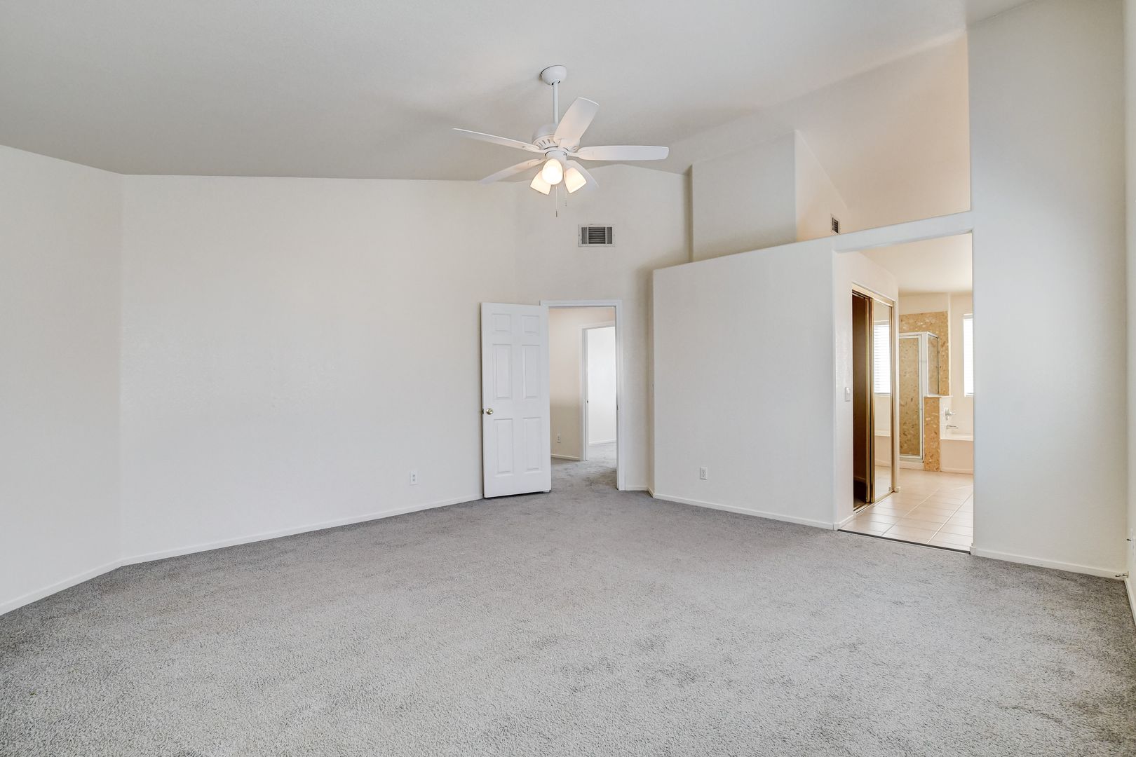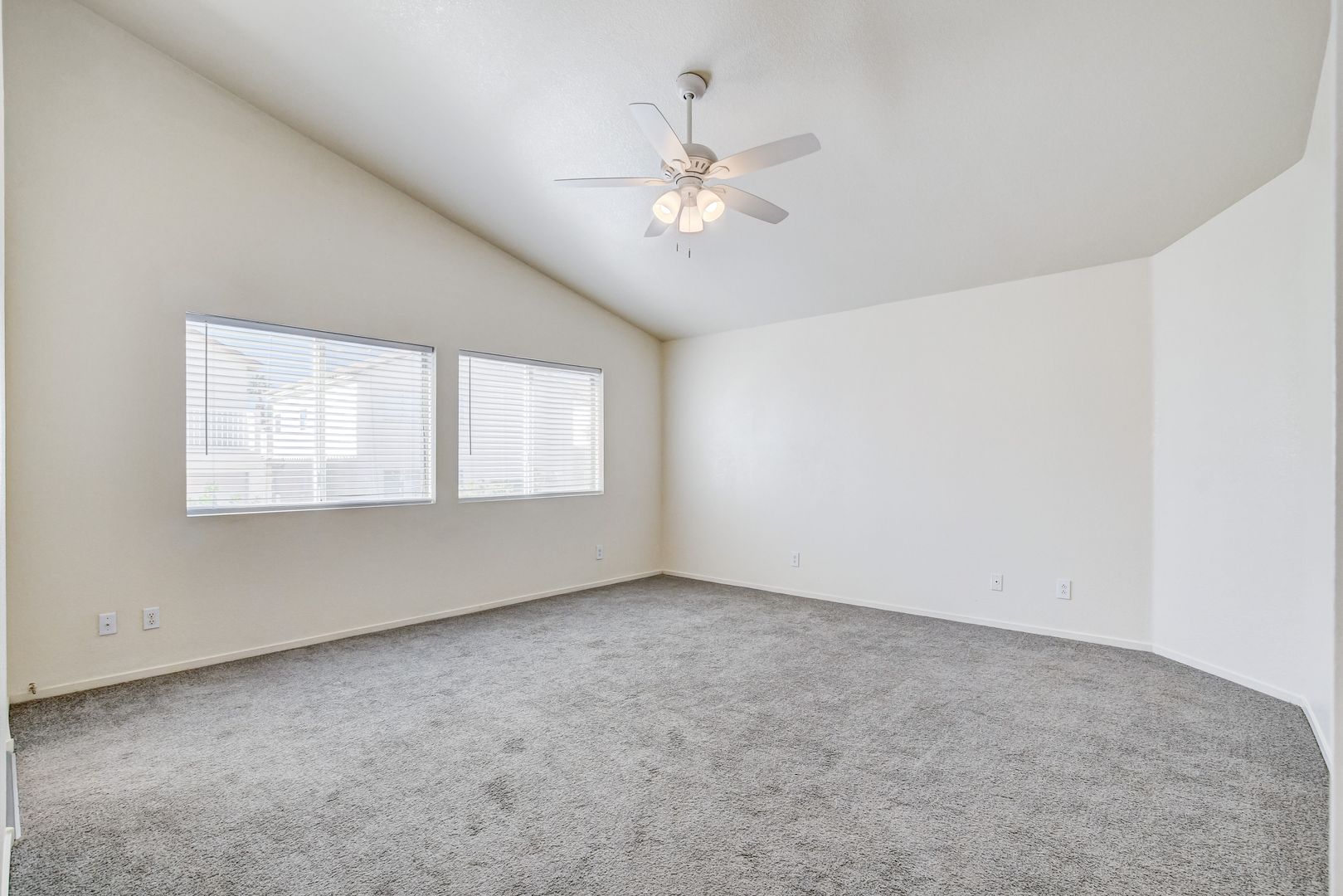 Spacious floor plan featuring vaulted ceilings and a family room with a stunning two-way fireplace. The kitchen offers a cozy nook, granite countertops, and ample space for everyday living. Living and dining rooms are enhanced with shutters, and the bathrooms have been tastefully upgraded. Enjoy nice Strip views. The price includes $50 per month for trash and sewer.