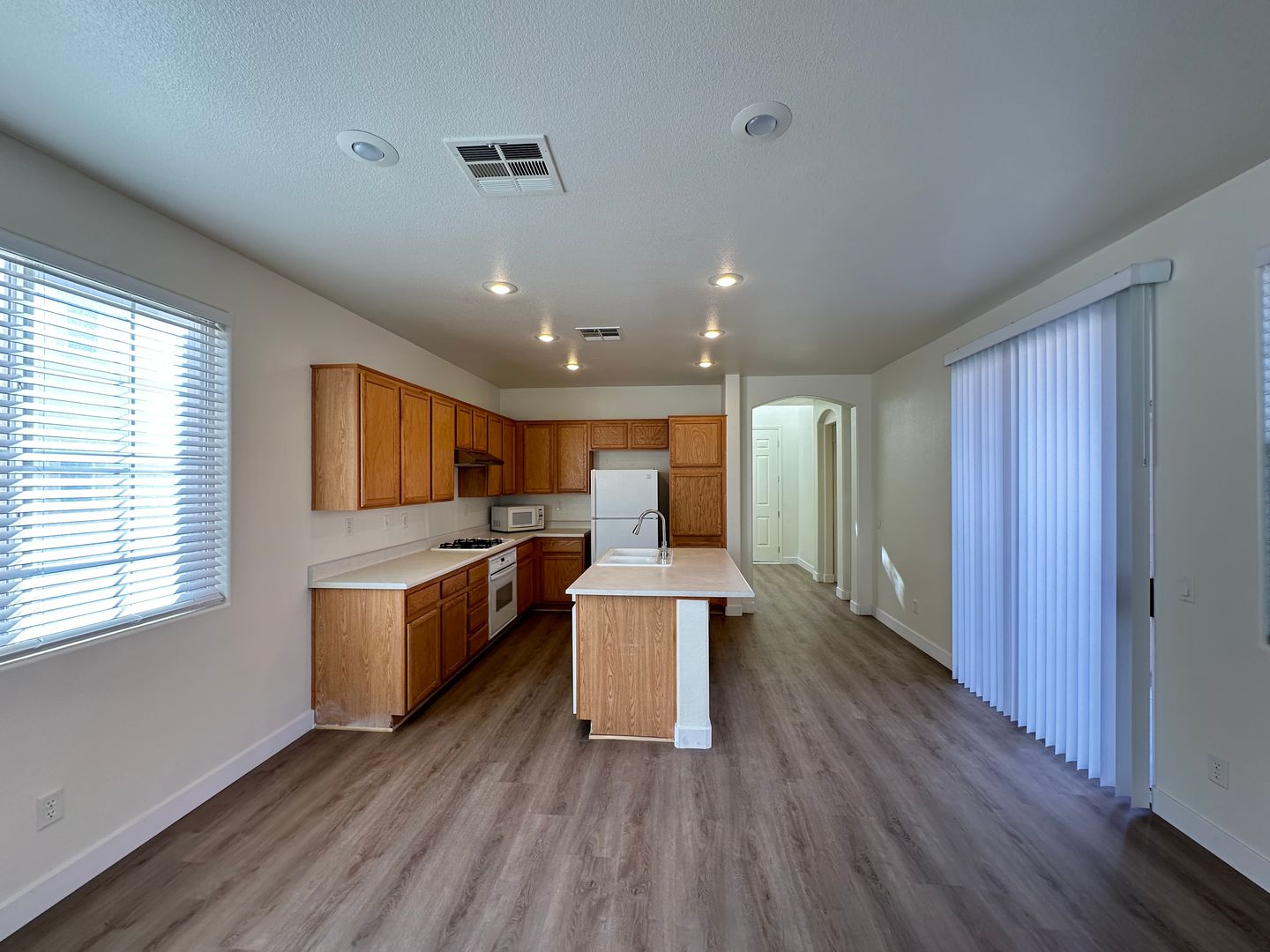 Beautiful Summerlin home with easy access to nearby shopping. Features one bedroom with a full bath downstairs and new waterproof laminate flooring throughout the main bedroom, guest bedroom, hallway, first-floor bedroom and bath, entry, kitchen, living room, laundry room, and storage. Upgraded with recessed lighting, kitchen island, built-in cooktop and oven. Large backyard and beautifully landscaped front yard. Price includes $50/month for trash and sewer.