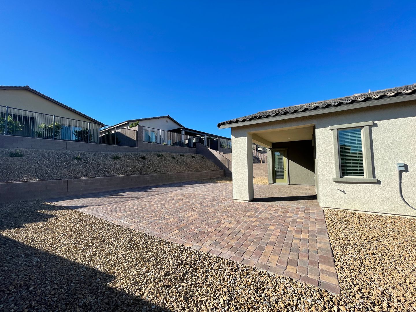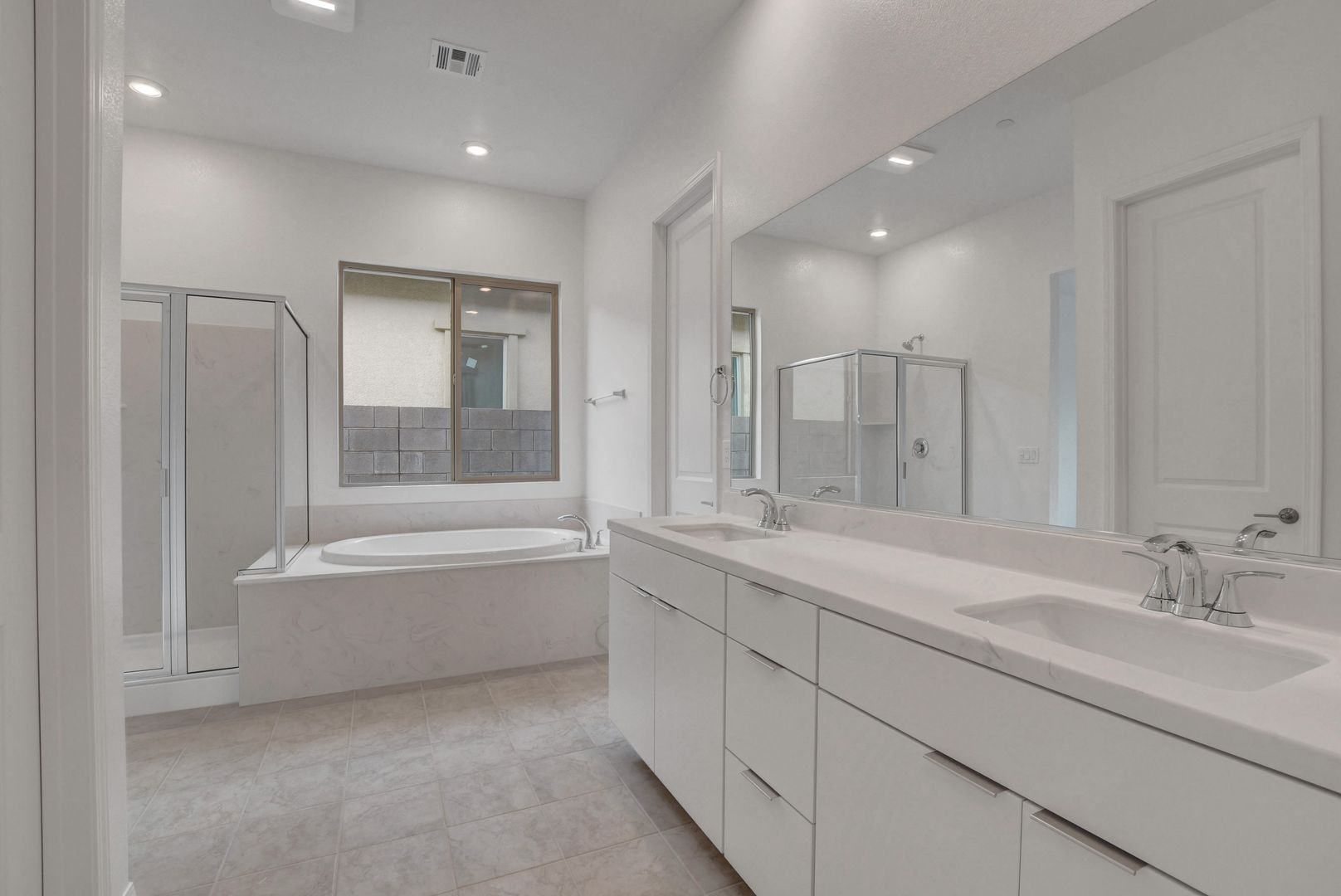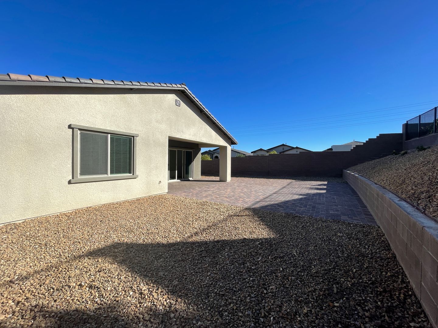 Premium corner-lot home with a large backyard in a gated Summerlin West community. Virtually brand-new, this contemporary SINGLE STORY home features an open-concept floor plan with vaulted ceilings. The expansive kitchen offers a large island with a touchless faucet and stainless steel appliances. Includes 4 bedrooms and 3.5 bathrooms with dual primary suites, a spacious laundry room with access from the primary suite, and a 2-car garage. Enjoy the covered stucco patio, tankless water heater, and more. A must see! Price includes $50 per month for: Trash and Sewer..