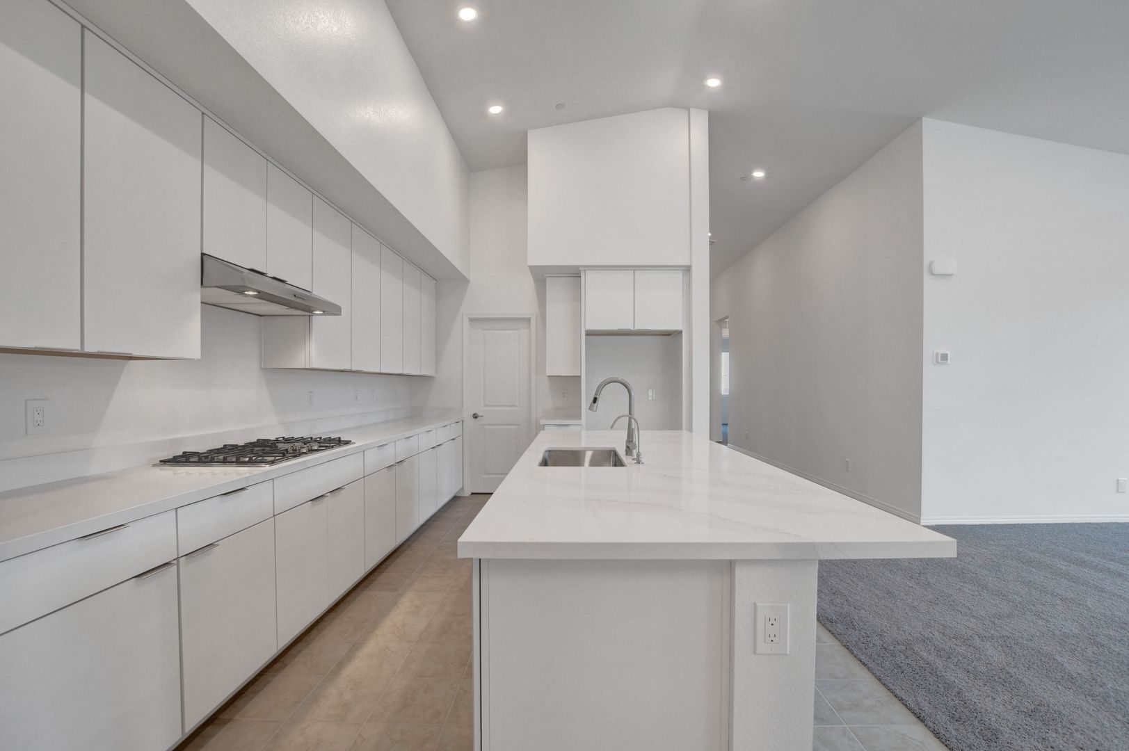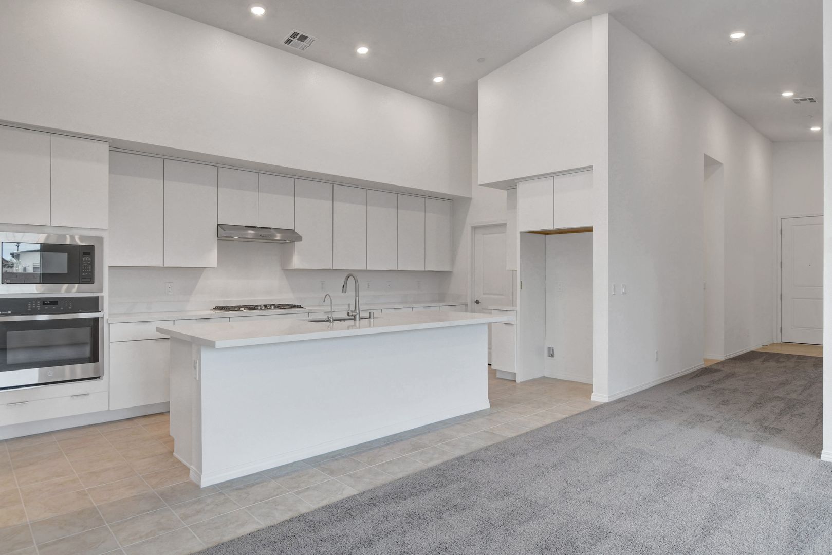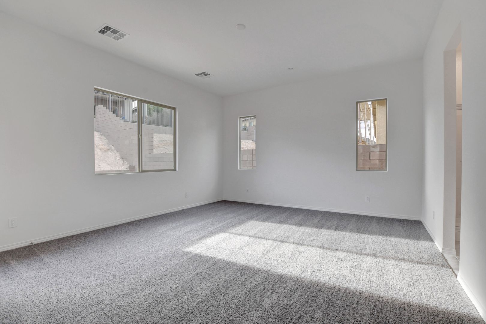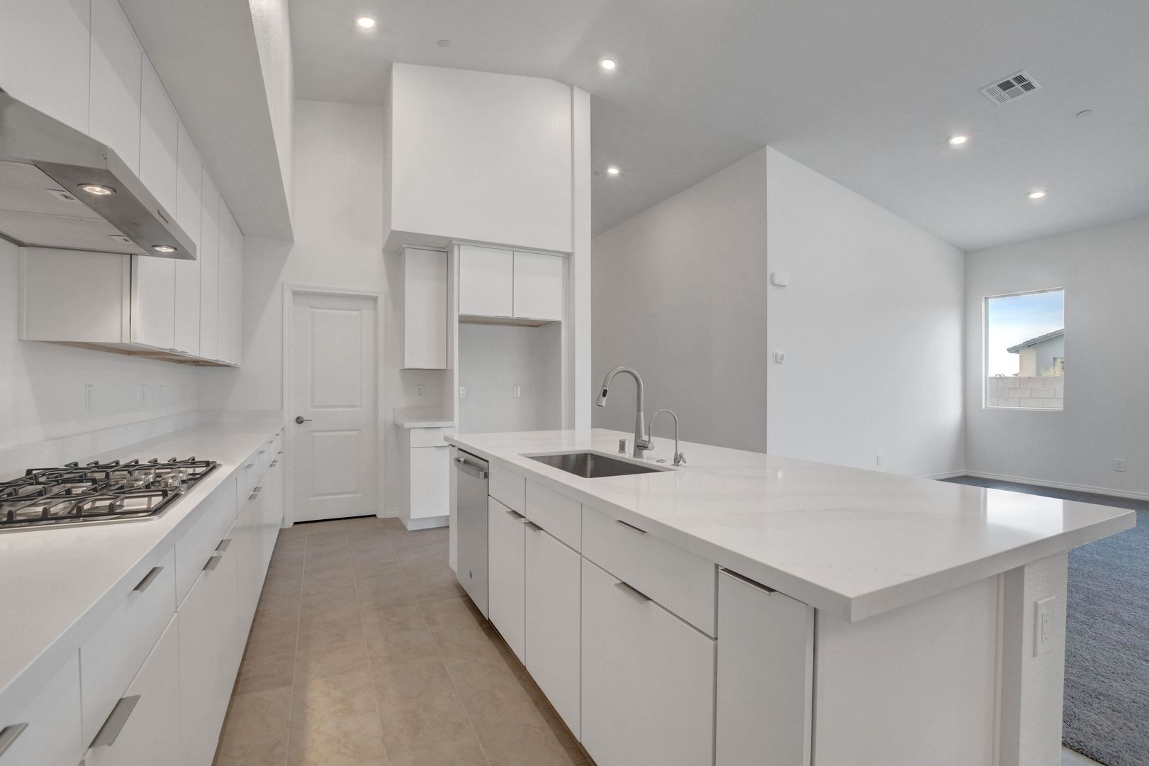 Premium corner-lot home with a large backyard in a gated Summerlin West community. Virtually brand-new, this contemporary SINGLE STORY home features an open-concept floor plan with vaulted ceilings. The expansive kitchen offers a large island with a touchless faucet and stainless steel appliances. Includes 4 bedrooms and 3.5 bathrooms with dual primary suites, a spacious laundry room with access from the primary suite, and a 2-car garage. Enjoy the covered stucco patio, tankless water heater, and more. A must see! Price includes $50 per month for: Trash and Sewer..