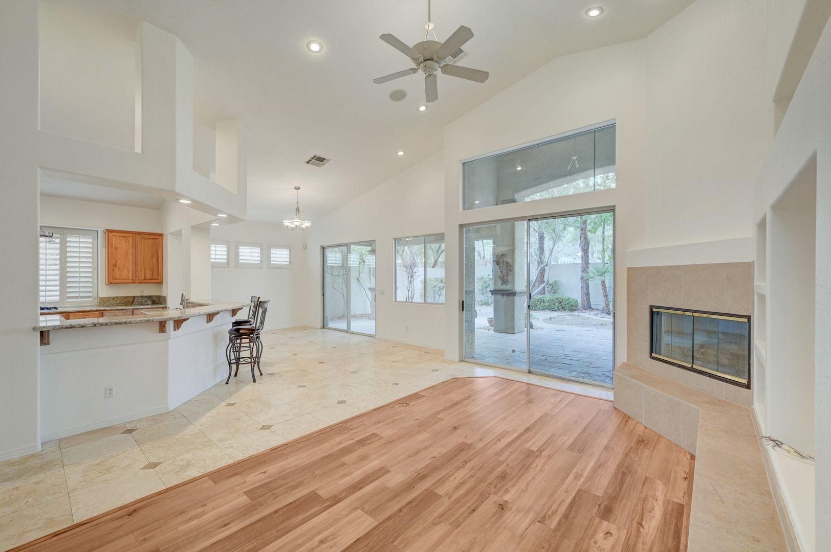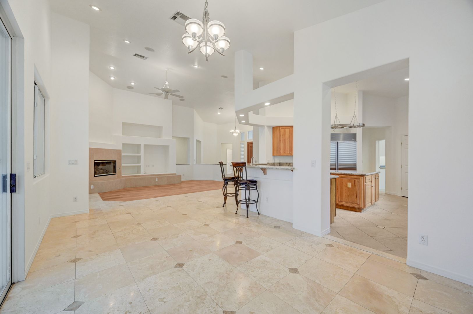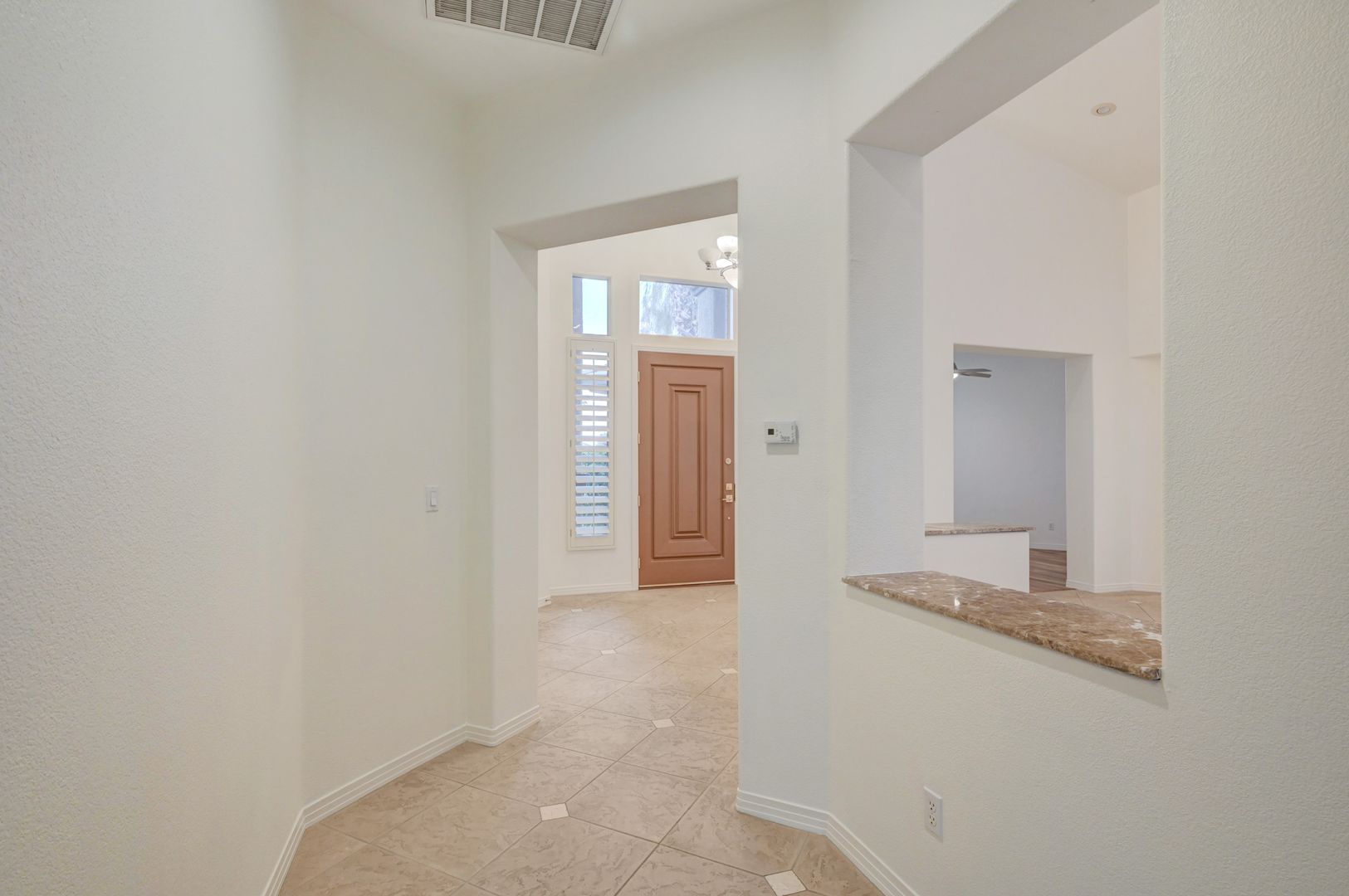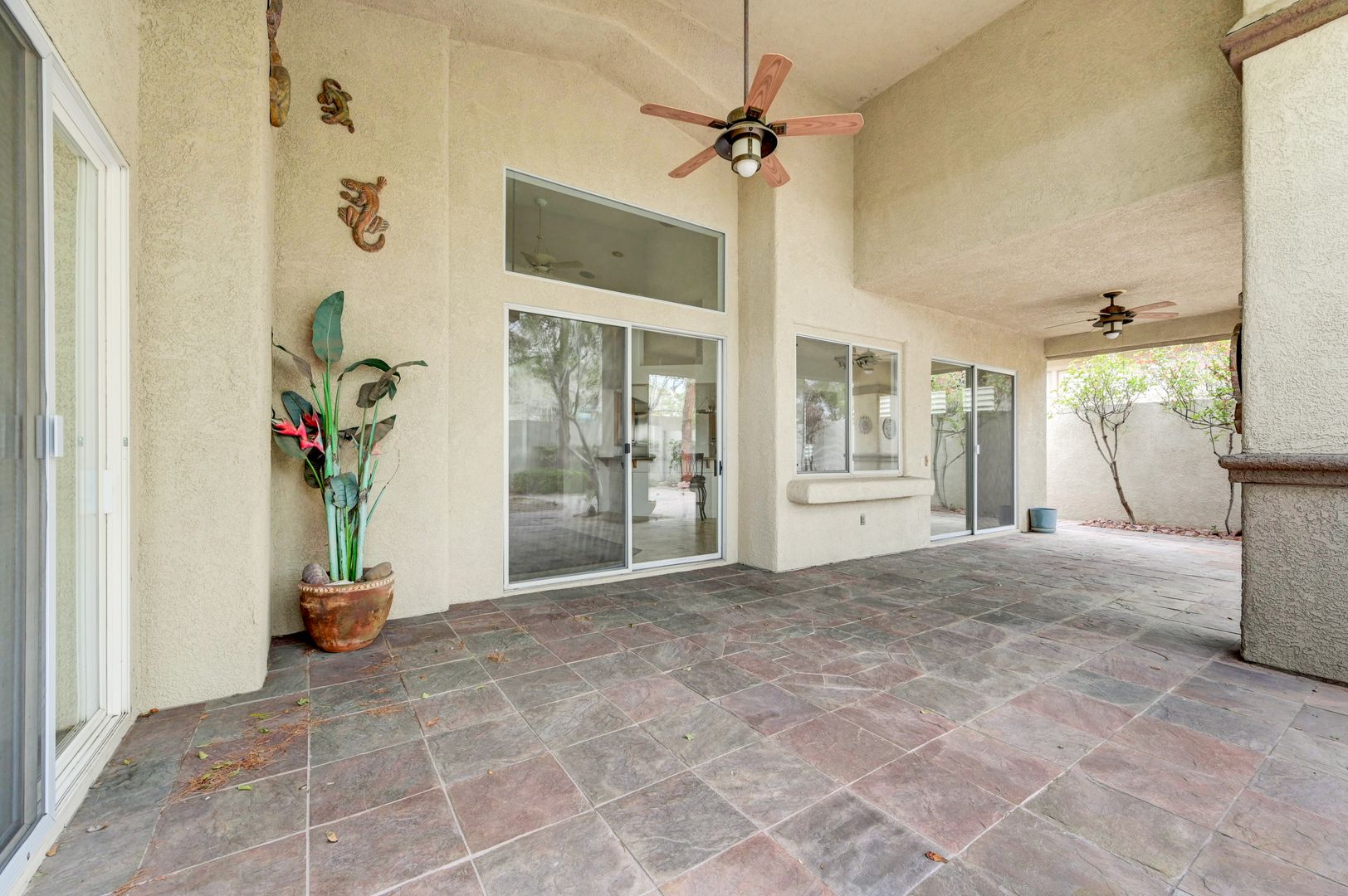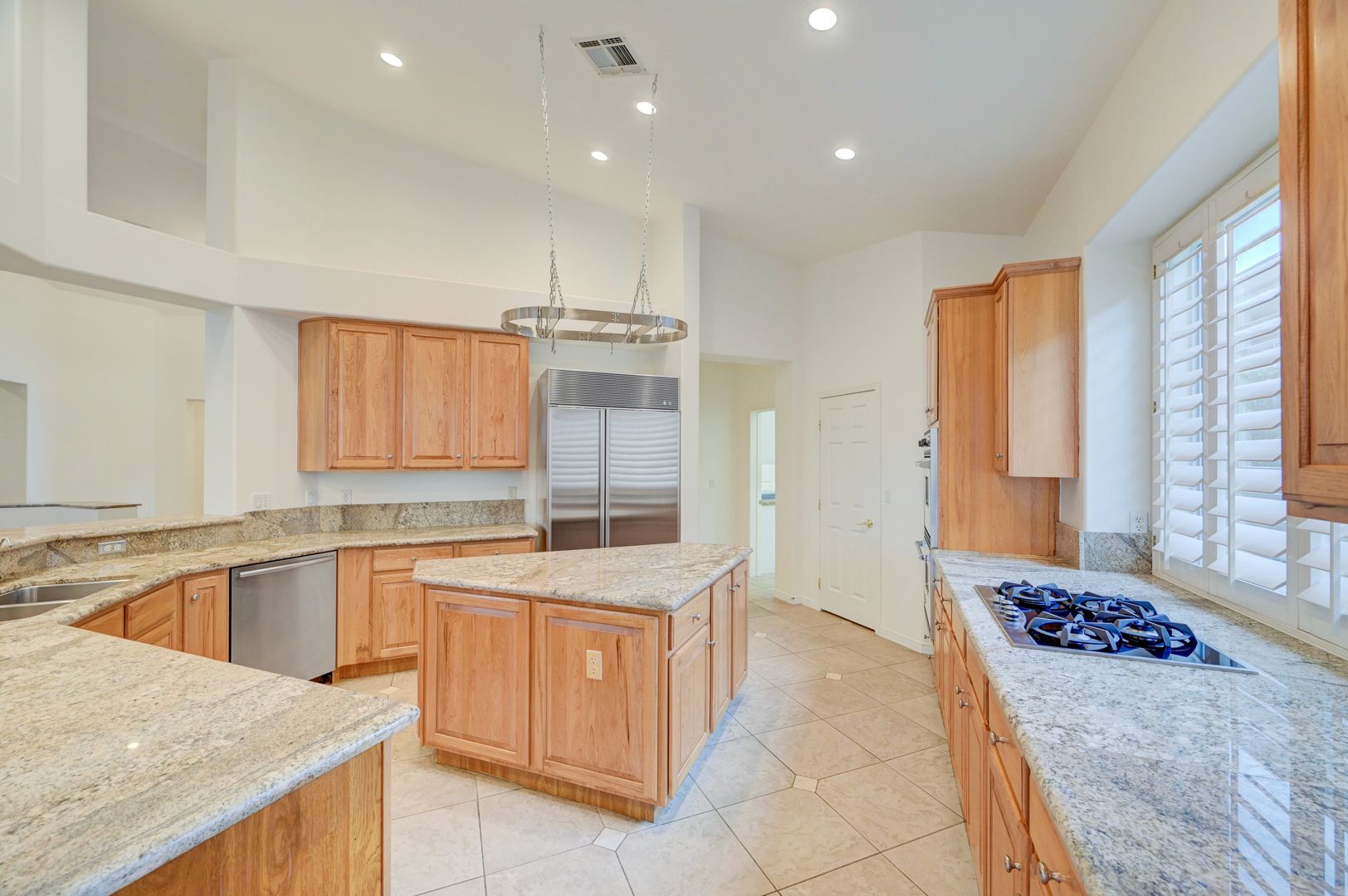 Unbeatable value in Summerlin! Located in the gated Canyon Ridge community next to TPC Summerlin, this single-story home features a spacious great room with gas fireplace, vaulted ceilings, and no carpet throughout. The gourmet kitchen offers a large granite island, walk-in pantry, pull-out drawers, wine rack, and Viking stainless steel appliances with double ovens. Private primary bedroom with oversized jetted tub, walk-in shower, and organized closet. Third bedroom set up as an office. Shutters throughout. Enjoy a pool-sized backyard with covered patio and tranquil fountain. Close to Downtown Summerlin, Red Rock Canyon, Summerlin Hospital Medical Center, Boca Park, and the Las Vegas Beltway. The price includes $50 a month for Trash & Sewer.