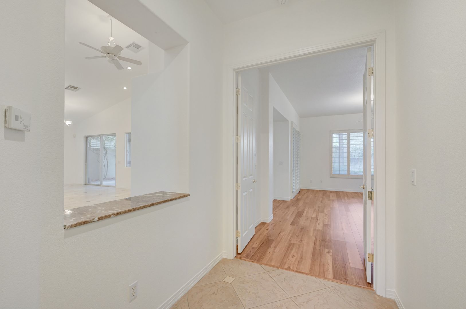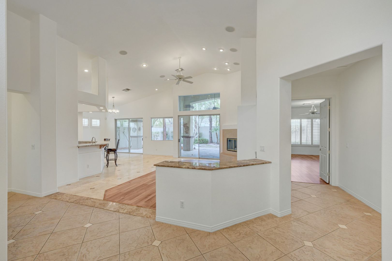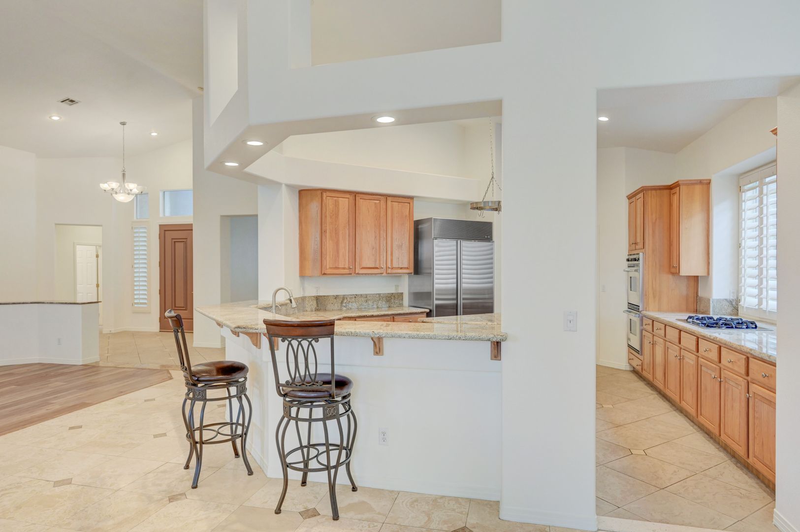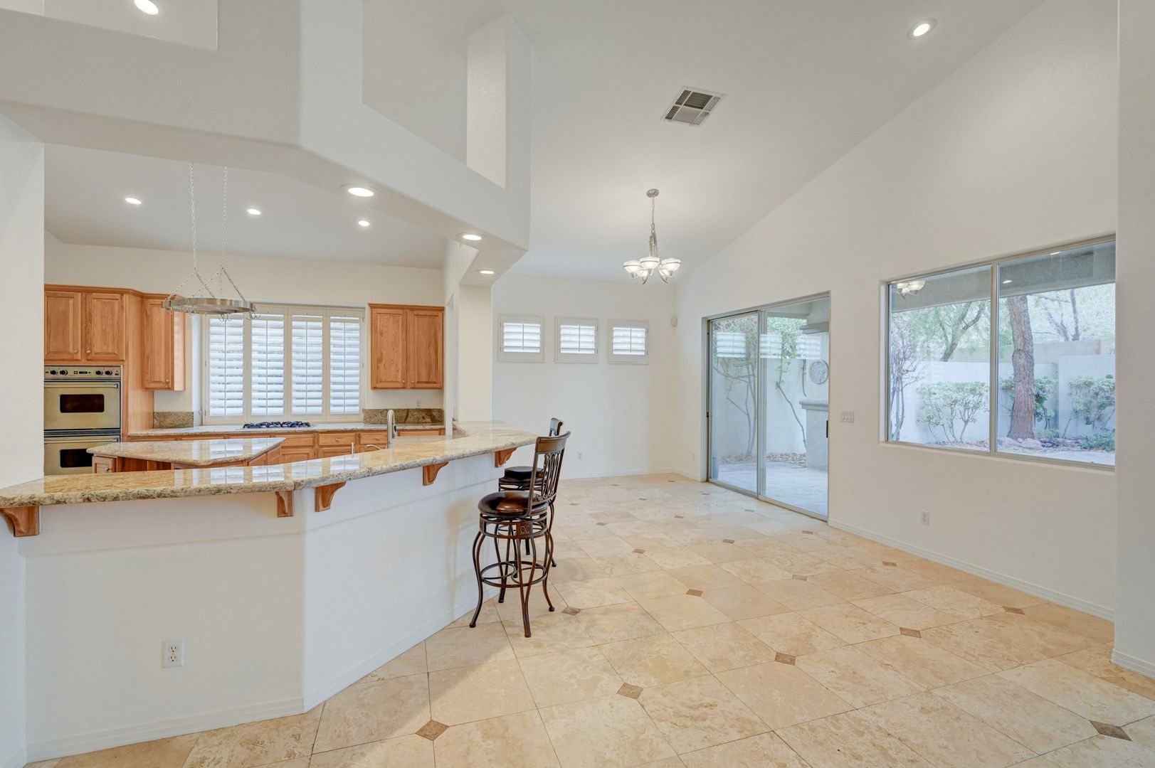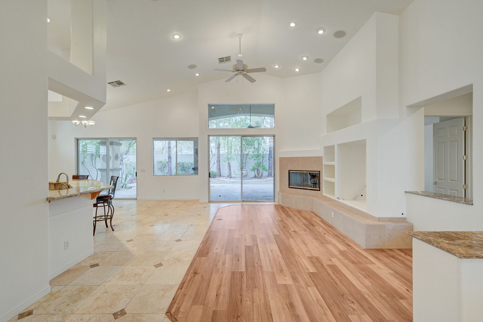 Unbeatable value in Summerlin! Located in the gated Canyon Ridge community next to TPC Summerlin, this single-story home features a spacious great room with gas fireplace, vaulted ceilings, and no carpet throughout. The gourmet kitchen offers a large granite island, walk-in pantry, pull-out drawers, wine rack, and Viking stainless steel appliances with double ovens. Private primary bedroom with oversized jetted tub, walk-in shower, and organized closet. Third bedroom set up as an office. Shutters throughout. Enjoy a pool-sized backyard with covered patio and tranquil fountain. Close to Downtown Summerlin, Red Rock Canyon, Summerlin Hospital Medical Center, Boca Park, and the Las Vegas Beltway. The price includes $50 a month for Trash & Sewer.