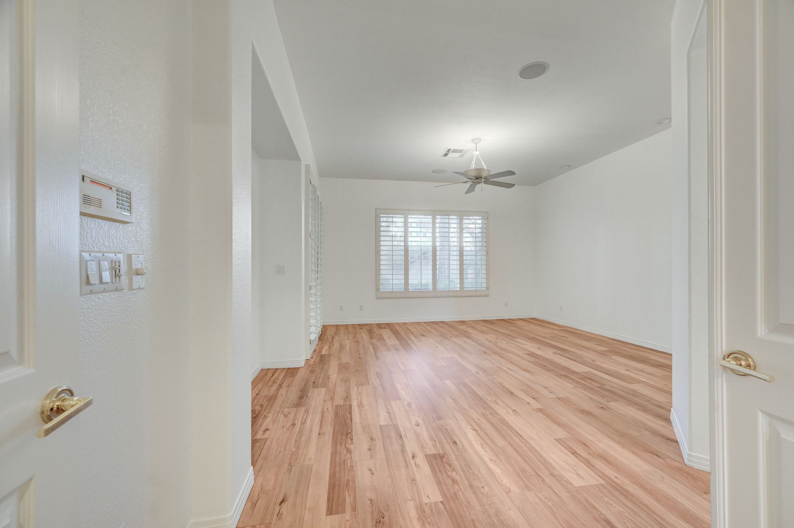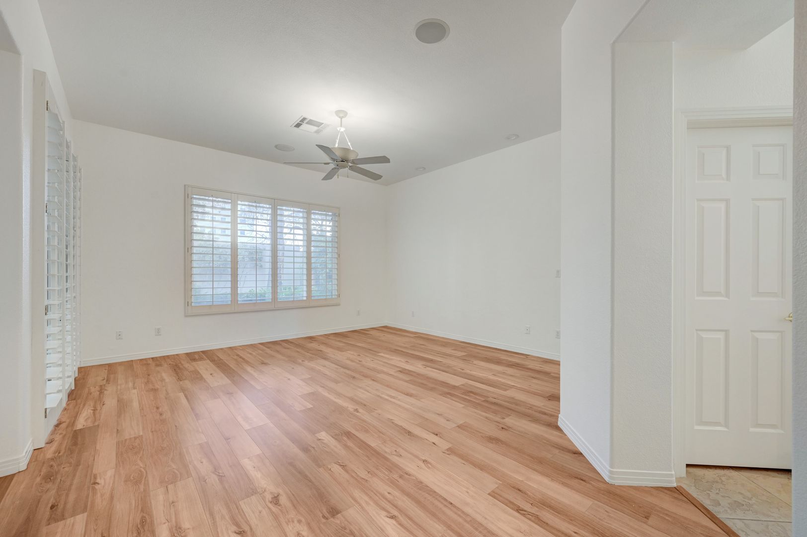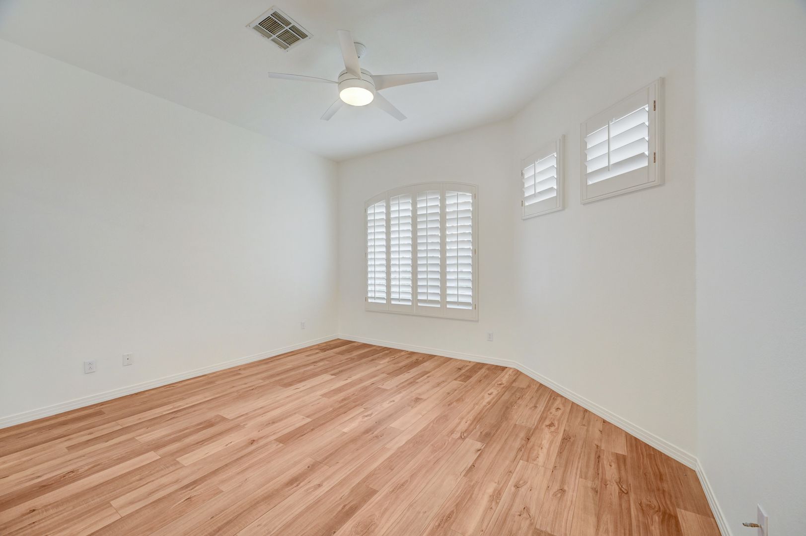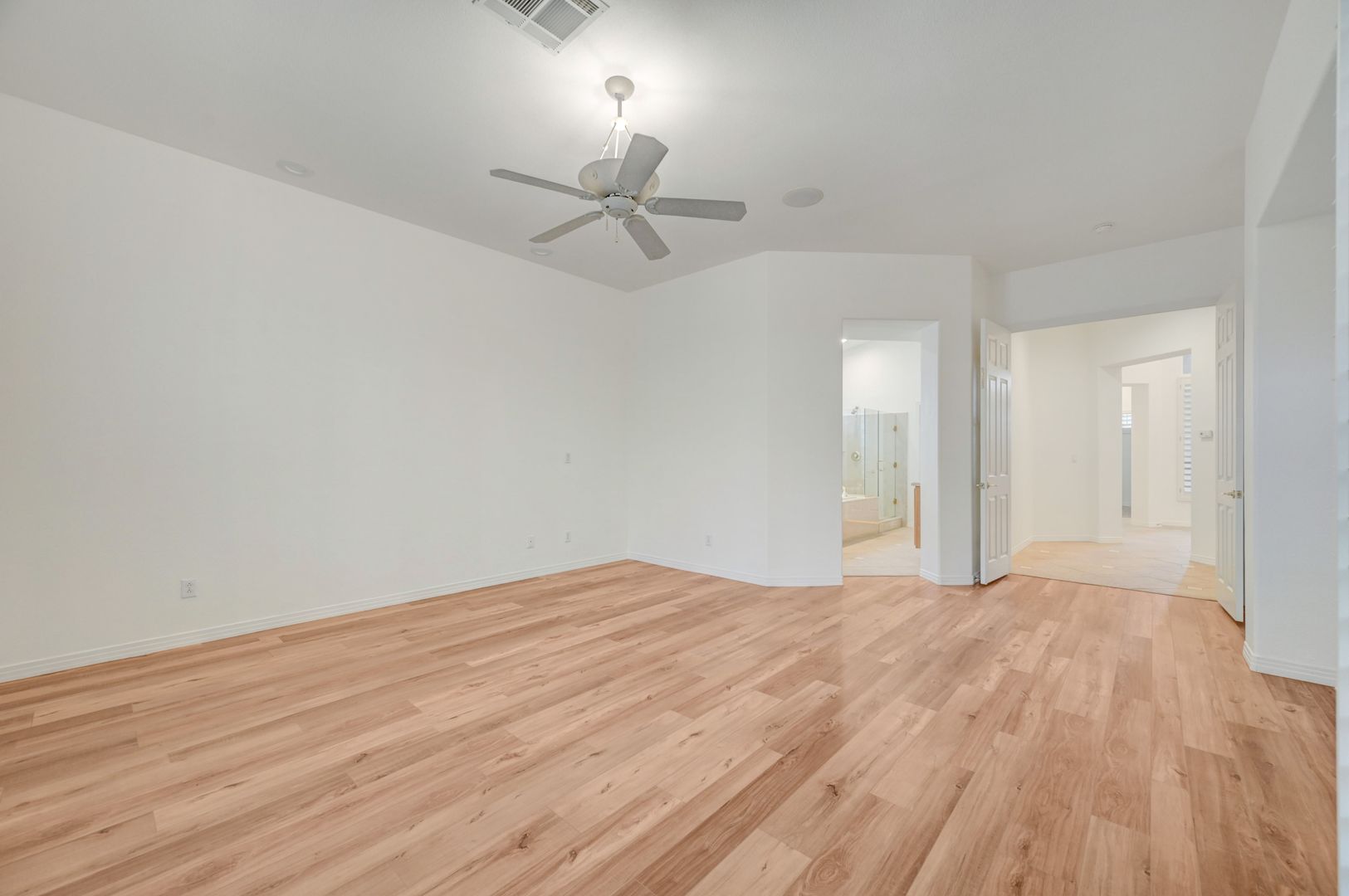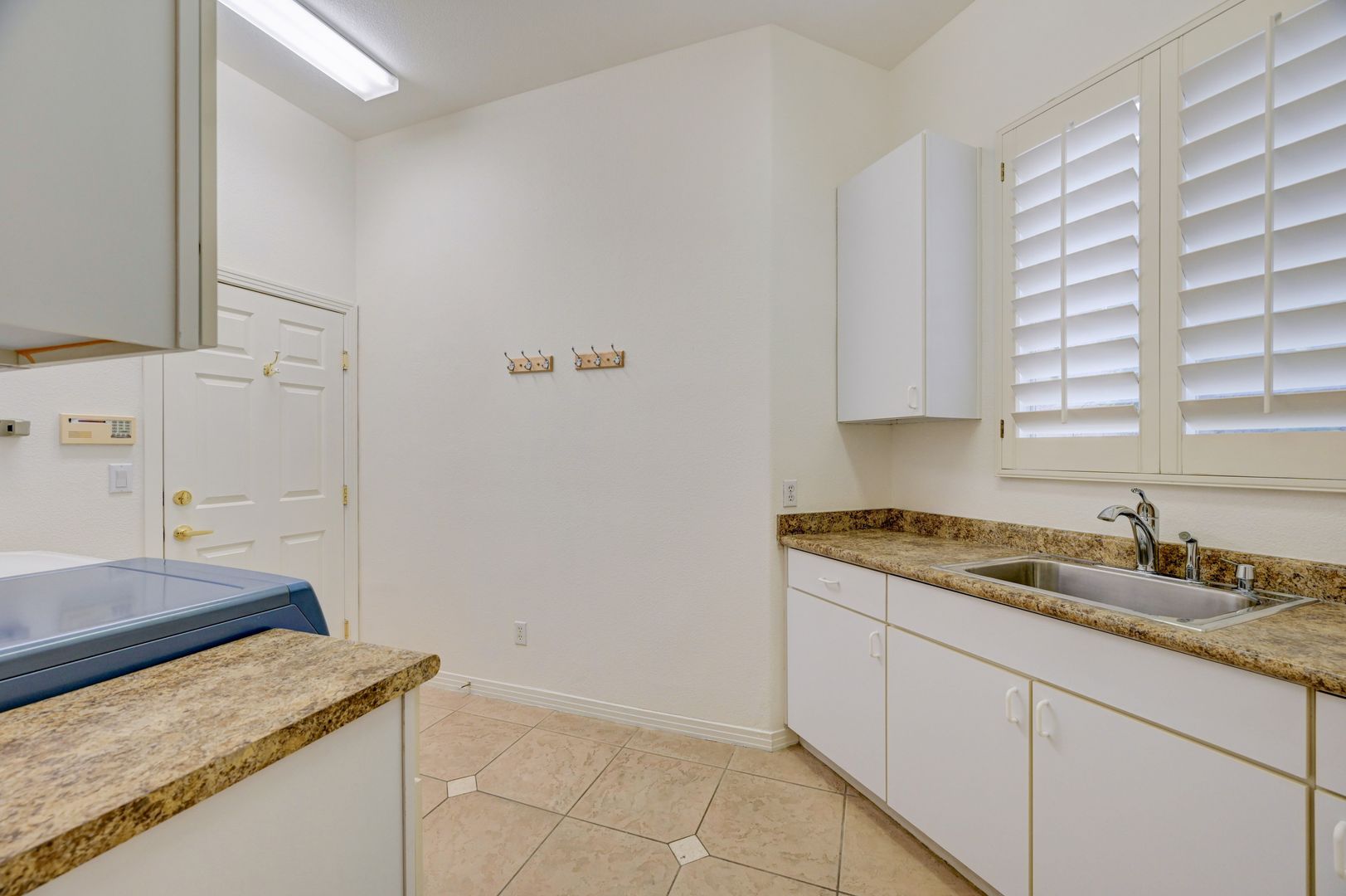 Unbeatable value in Summerlin! Located in the gated Canyon Ridge community next to TPC Summerlin, this single-story home features a spacious great room with gas fireplace, vaulted ceilings, and no carpet throughout. The gourmet kitchen offers a large granite island, walk-in pantry, pull-out drawers, wine rack, and Viking stainless steel appliances with double ovens. Private primary bedroom with oversized jetted tub, walk-in shower, and organized closet. Third bedroom set up as an office. Shutters throughout. Enjoy a pool-sized backyard with covered patio and tranquil fountain. Close to Downtown Summerlin, Red Rock Canyon, Summerlin Hospital Medical Center, Boca Park, and the Las Vegas Beltway. The price includes $50 a month for Trash & Sewer.