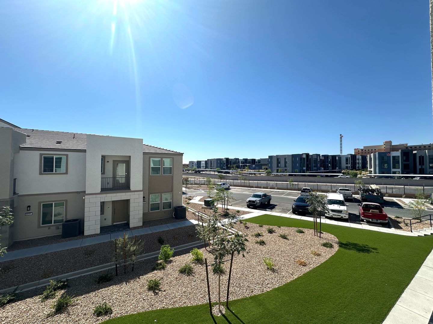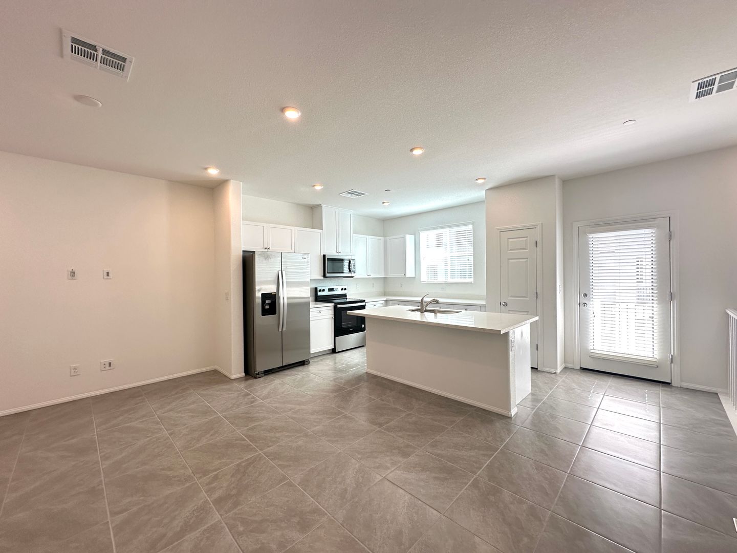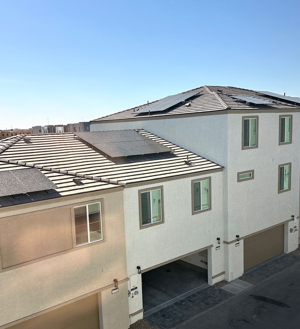 Open-concept floor plan showcasing a modern kitchen with a quartz countertop island, stainless steel appliances, and energy-efficient features, including a heat pump water heater and enhanced wall insulation for comfort and savings. This townhome offers 3 bedrooms with the primary suite conveniently located on the first floor, 2 bathrooms, a 2-car garage, and a private balcony. SOLAR FEE IS ADDITIONAL $50 PER MONTH, this Griffin plan is part of the Energy Series READY collection—certified by the U.S. Department of Energy as a Zero Energy Ready Home™. And an indoor air PLUS qualified" for cleaner, healthier air. **New water softener installed.** Price includes $100.00 p/m for solar, trash & sewer. LOTS OF UPGRADES!