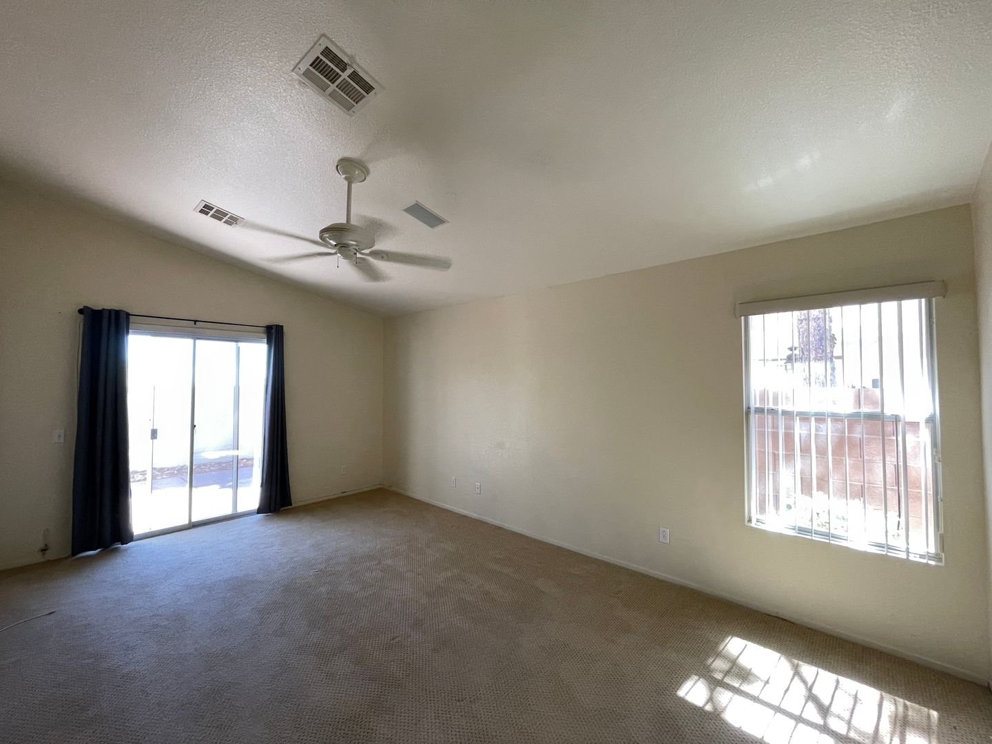 Inviting 3-bedroom, 2-bath single-story residence in a gated community near Lone Mountain & Cheyenne. Interior features a blend of carpet and laminate flooring, with a primary suite that includes a walk-in closet and custom built-in cabinetry. The low-maintenance backyard offers a relaxing pergola, raised deck, and desert-style landscaping. Conveniently located less than a mile from Majestic Park and just minutes from shopping, dining, and the 215 beltway. Price includes $50 for monthly trash and sewer.