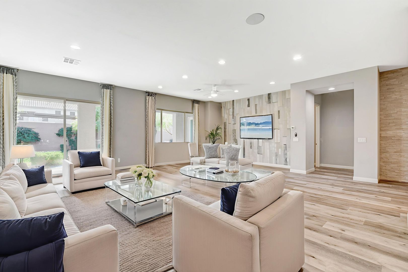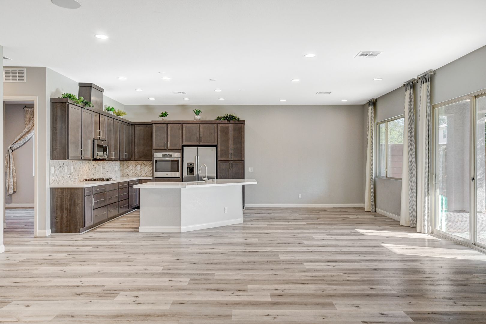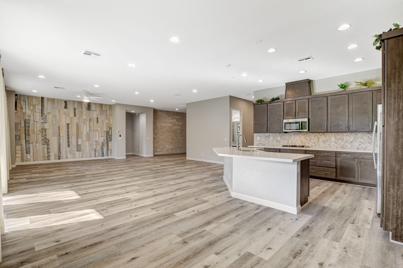 This modern SINGLE STORY home with 4 bed/3 bath, 3 car-garage (a tandem space for the 3rd car) is located in the Silverado area (Bermuda & Pyle), Beautiful patio cover for outdoor entertaining. Large walk in shower @ Master bath. Kitchen areas - a focal point of the space - has been upgraded with custom cabinetry, stainless steel appliances, large island with stunning quartz countertops, elegant mosaic tile backsplash and pulldown faucet. Home features 10’ high vaulted ceilings, vinyl flooring, carpet and ceiling fans in the M/B bedroom. Nearby shopping and restaurants include South Premium Outlets, Town Square, Bass Pro Shops, Tacos El Gordo, Starbucks, In n Out, Chick Fil A, Whole Foods, Trader Joes, Target, Walmart, Costco, Fitness Centers, Golf Courses, and much more! Near Silverado Ranch Park and South Point Casino. Price includes $50 p/m for trash and sewer.