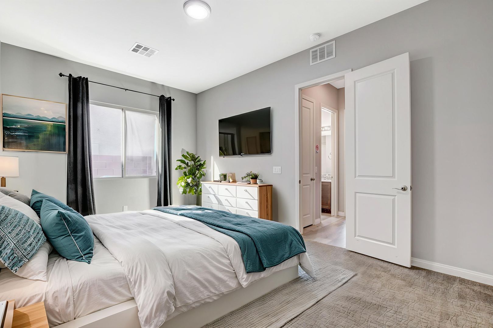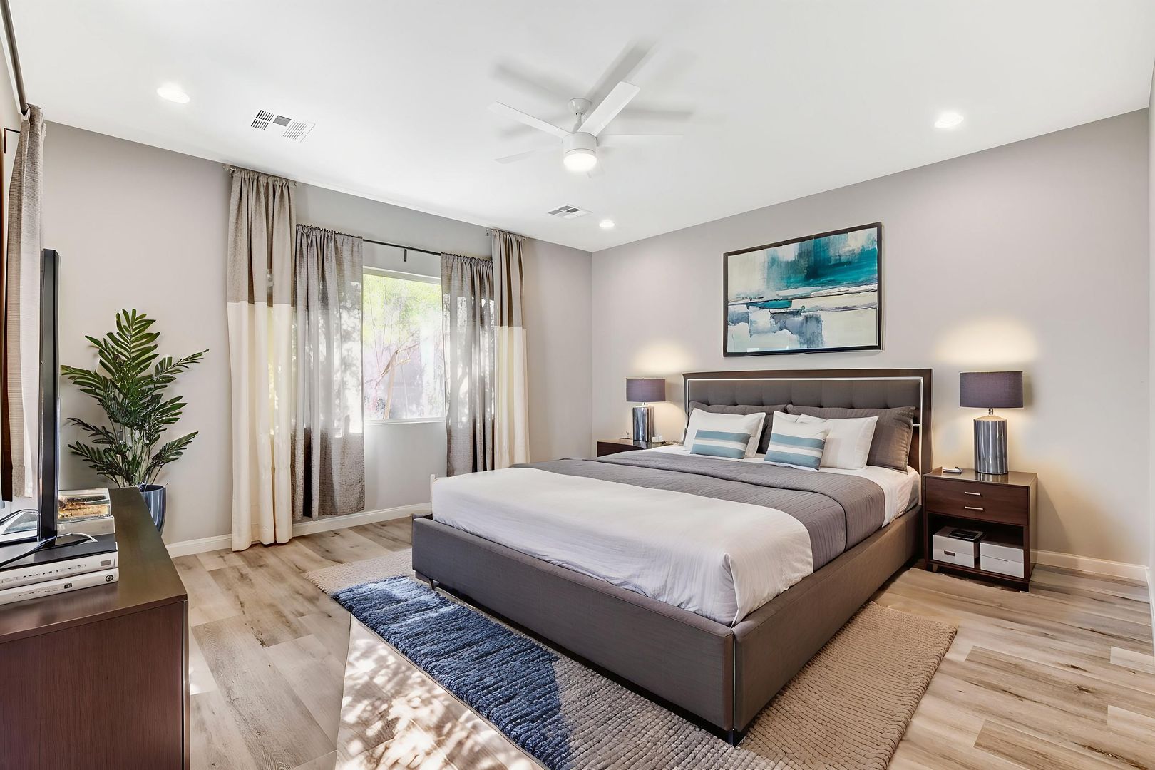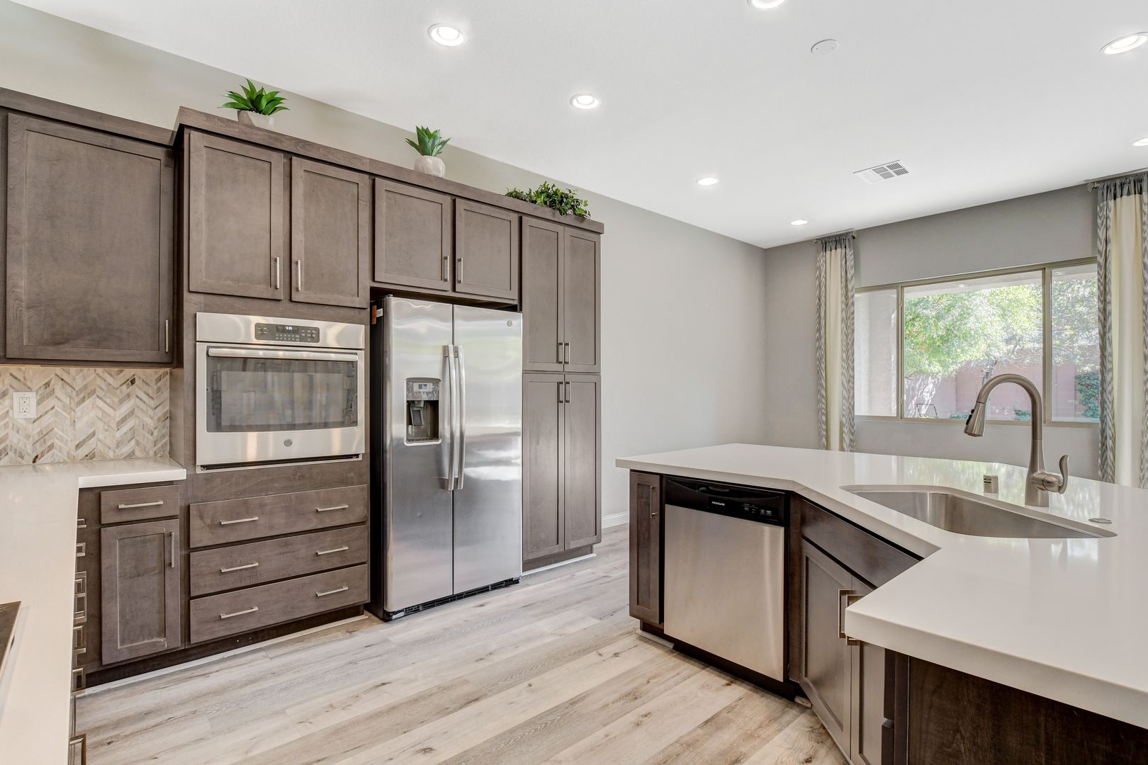 This modern SINGLE STORY home with 4 bed/3 bath, 3 car-garage (a tandem space for the 3rd car) is located in the Silverado area (Bermuda & Pyle), Beautiful patio cover for outdoor entertaining. Large walk in shower @ Master bath. Kitchen areas - a focal point of the space - has been upgraded with custom cabinetry, stainless steel appliances, large island with stunning quartz countertops, elegant mosaic tile backsplash and pulldown faucet. Home features 10’ high vaulted ceilings, vinyl flooring, carpet and ceiling fans in the M/B bedroom. Nearby shopping and restaurants include South Premium Outlets, Town Square, Bass Pro Shops, Tacos El Gordo, Starbucks, In n Out, Chick Fil A, Whole Foods, Trader Joes, Target, Walmart, Costco, Fitness Centers, Golf Courses, and much more! Near Silverado Ranch Park and South Point Casino. Price includes $50 p/m for trash and sewer.