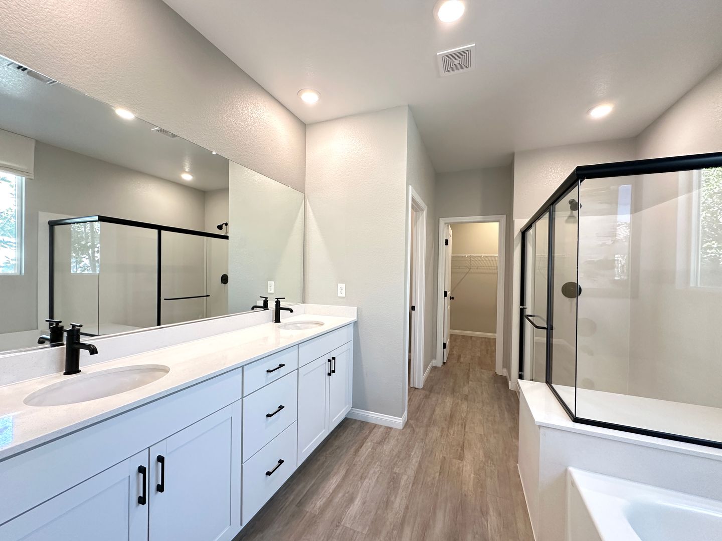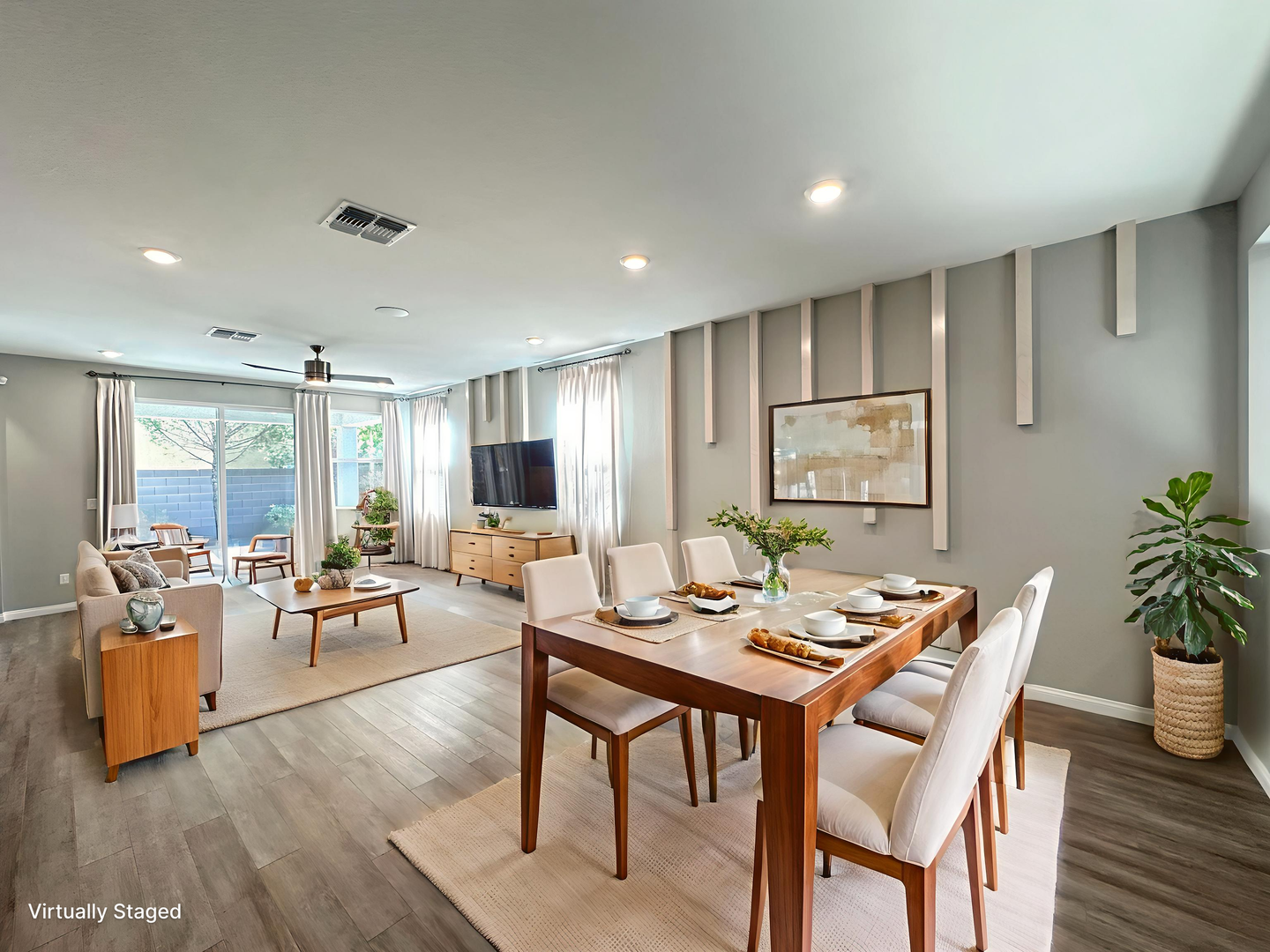 MODEL HOME in the Southwest. Close to IKEA, Arroyo Shopping, UnCommons, and easy access to the 215. Open floor plan with a private primary suite separate from secondary rooms. Upgraded kitchen with stainless steel appliances, quartz countertops, pantry, and ample storage. Primary bath features dual sinks and a walk-in shower with bench. Low-maintenance backyard with pavers, synthetic turf, and covered patio. The price includes $50 for trash and sewer.