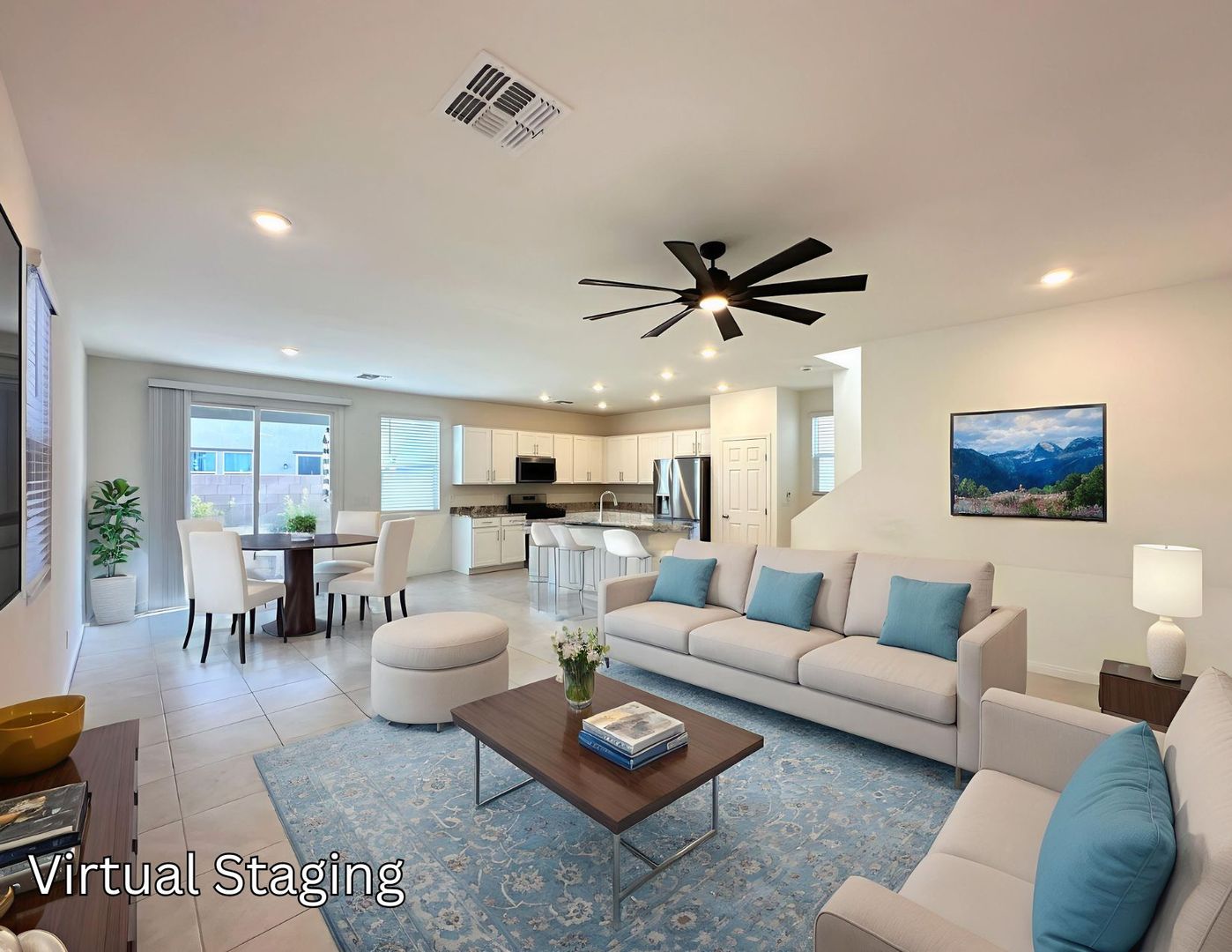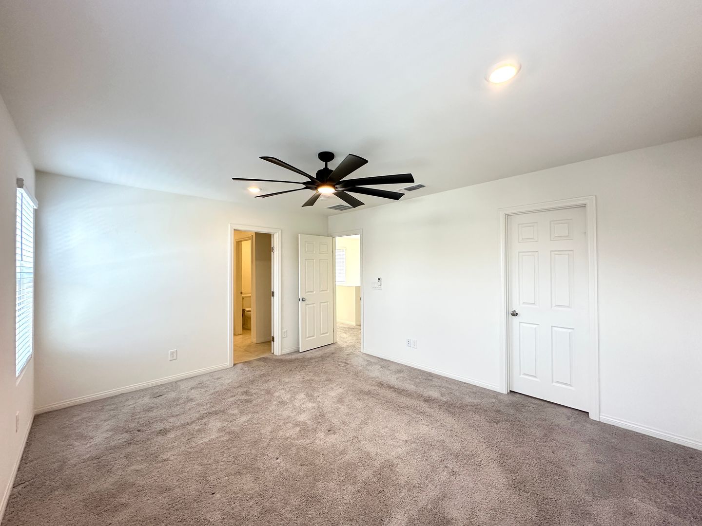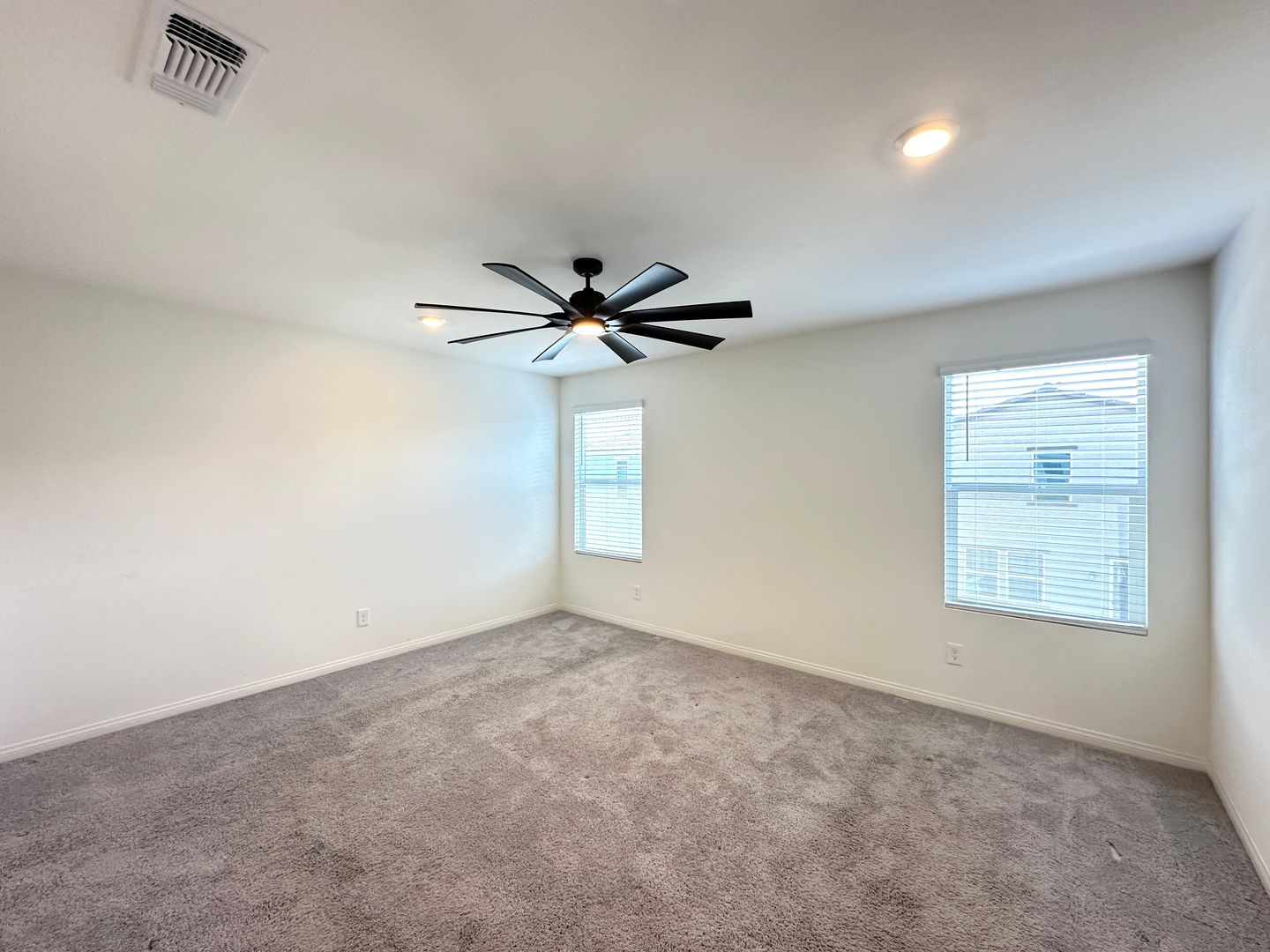 Beautiful 2-story home featuring 4 bedrooms and 3 bathrooms, including a convenient downstairs bedroom with a ¾ bath. The kitchen is equipped with stainless steel appliances, and the main level boasts durable tile flooring, while the upstairs offers comfortable carpeting. Enjoy the additional loft space, perfect for a second living area, office, or playroom. Ceiling fans are included throughout for added comfort. Price includes $50.00 p/m for trash & sewer.