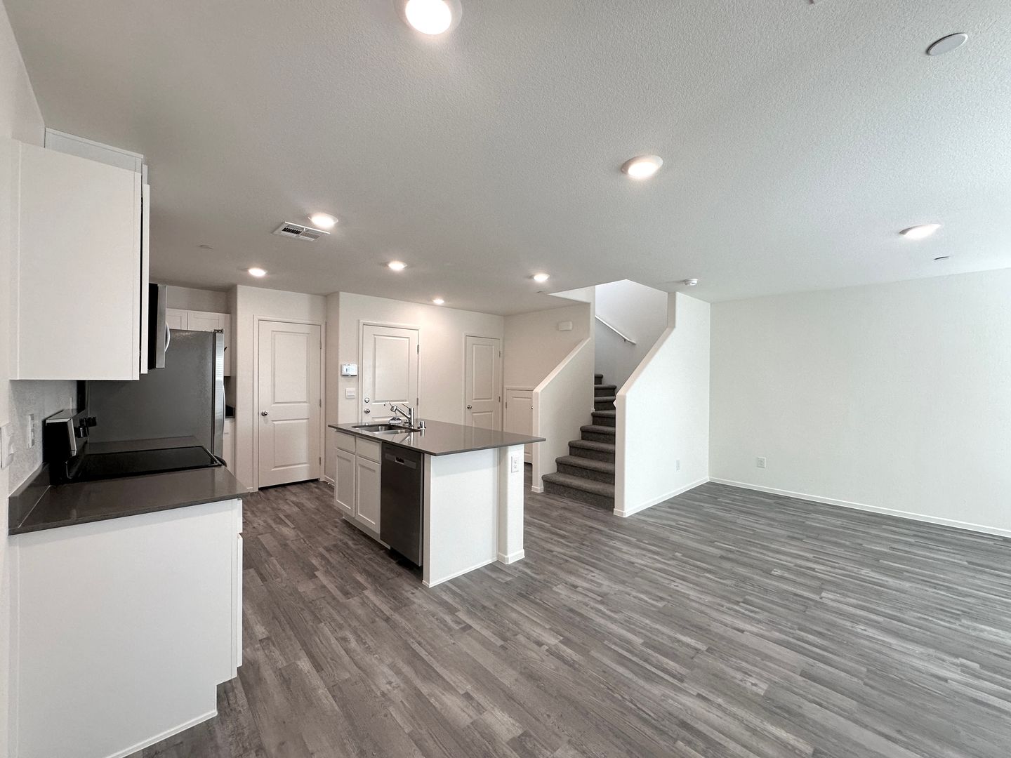 Experience modern living in this brand-new 3-bedroom, 2.5-bathroom townhouse, thoughtfully designed with style and functionality in mind. The open-concept main floor features a contemporary kitchen that will impress any home chef, complete with sleek quartz countertops, a spacious kitchen island, and top-of-the-line stainless steel appliances. The adjoining living and dining areas provide a seamless flow for entertaining or relaxing. Upstairs, you’ll find three generously sized bedrooms, offering privacy and comfort. The primary suite boasts ample closet space and a spa-like bathroom with elegant finishes. Additional highlights include energy-efficient systems, modern lighting, and premium flooring throughout. Situated in a desirable location, this townhouse offers convenient access to shopping, dining, and recreational amenities. EV Charger in the garage. Price includes $50 a month for trash & sewer.