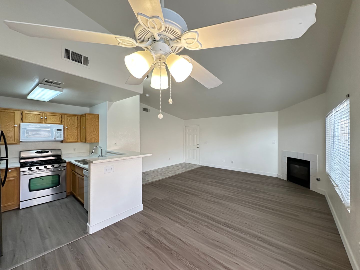 Attractive 2-bedroom, 2-bathroom corner-unit condo located on the second floor in a quiet community. Features include new waterproof laminate flooring in the living room and hallway (no carpet) and mostly stainless steel appliances. The entire home has been freshly painted. Enjoy access to the community pool in the summer and a cozy fireplace in the winter. Covered parking is also included. The price includes $95 a month for Water, Trash & Sewer.