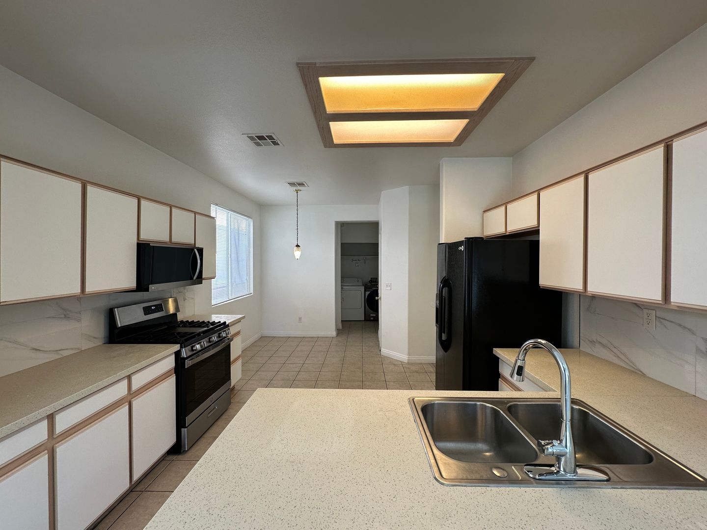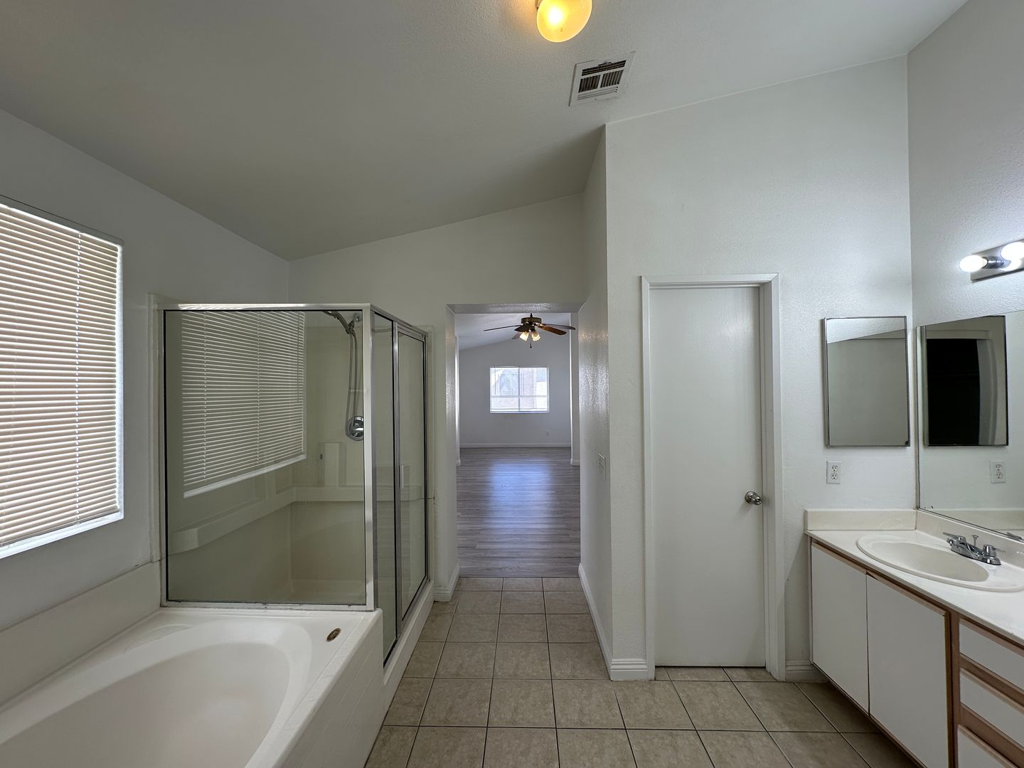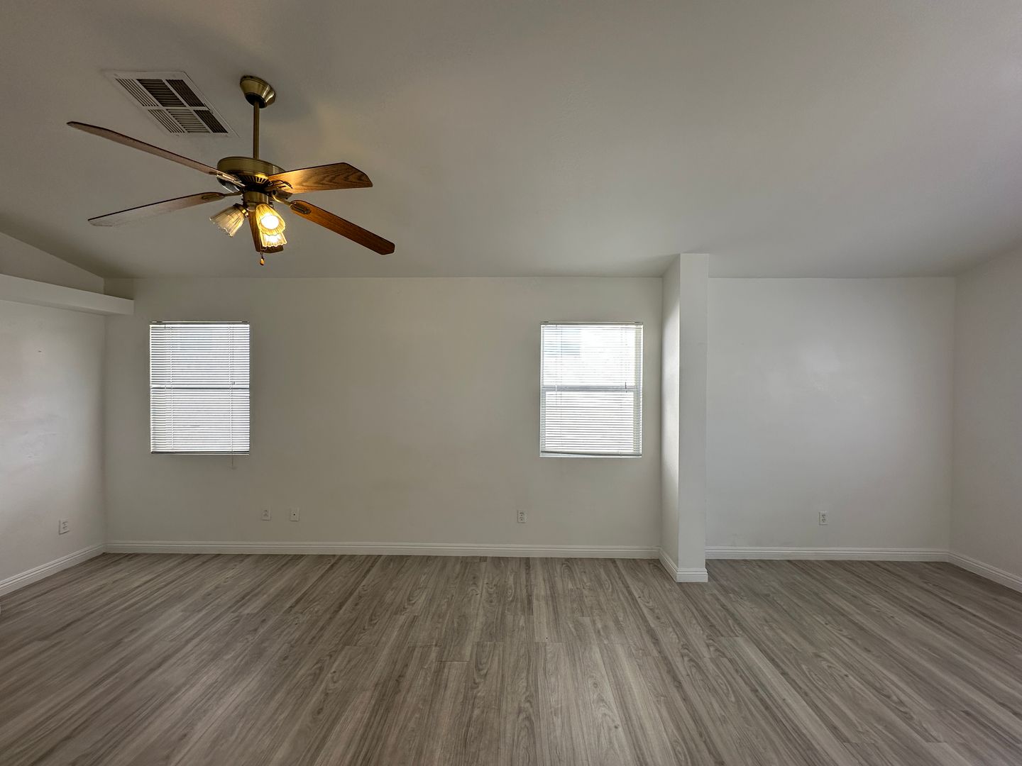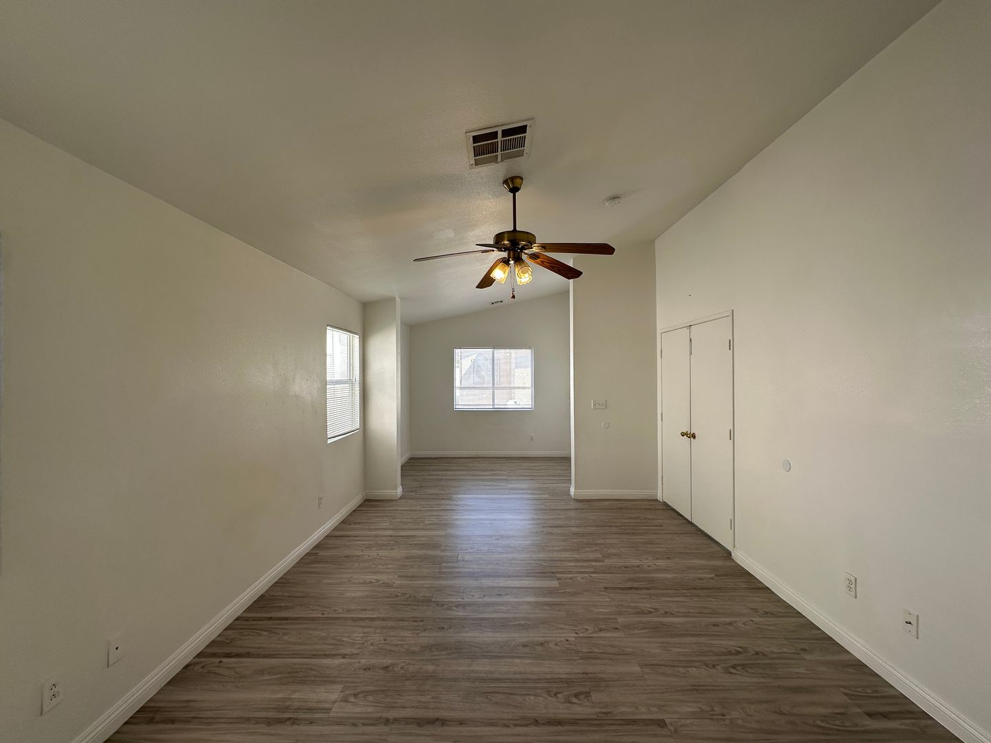 Attractive 4 bd/3 ba home with a formal living room features in soaring ceiling, grand architectural details and elegant fireplace. Custom designer window coverings throughout. Family rm. w/sliding glass door to lg. brick patio. Lg. Main. bedroom with vaulted ceiling + sitting room. Extra large closet. Across from park. 4th bd. loft. Laminate flooring, **NO CARPET**.