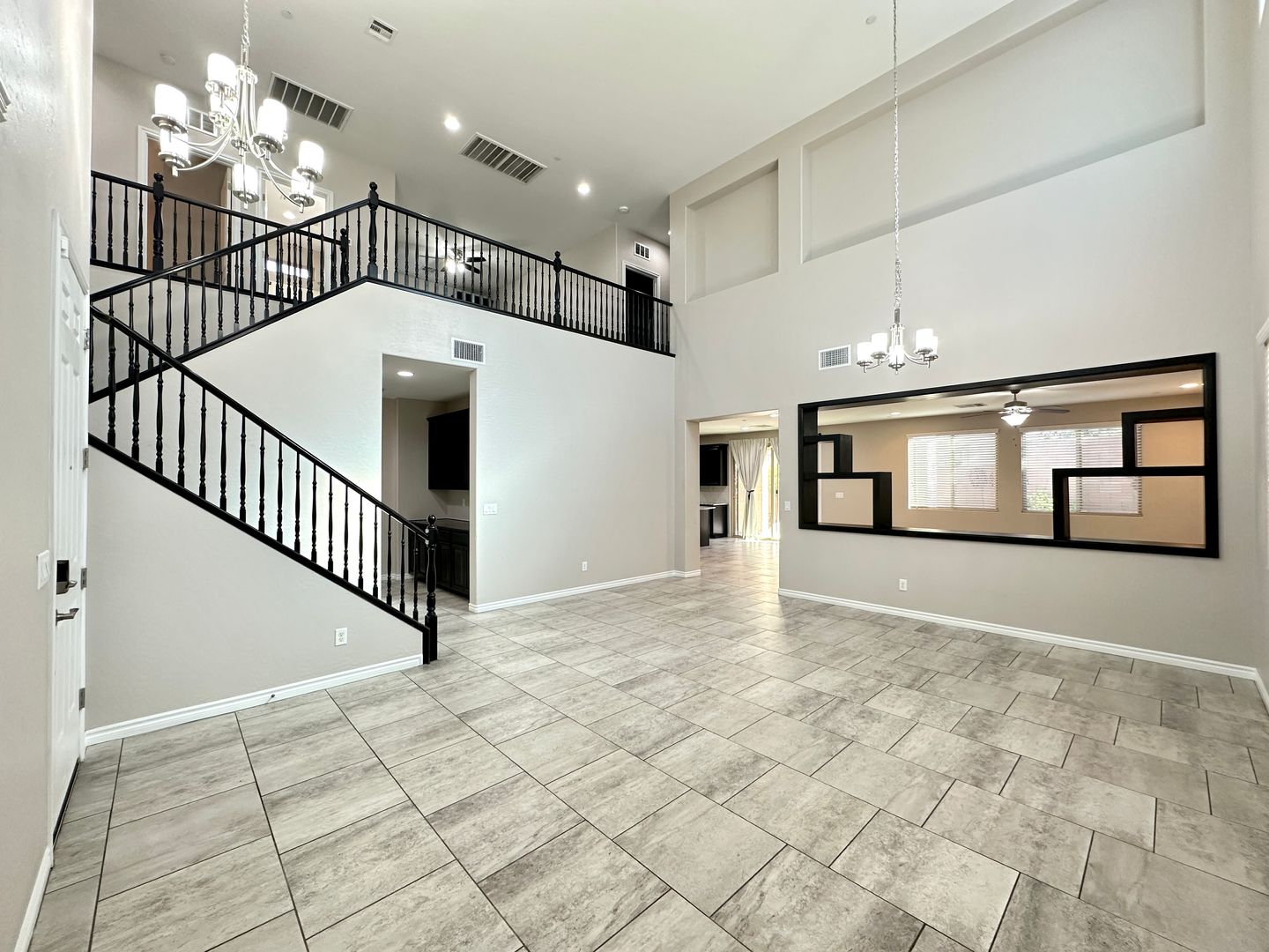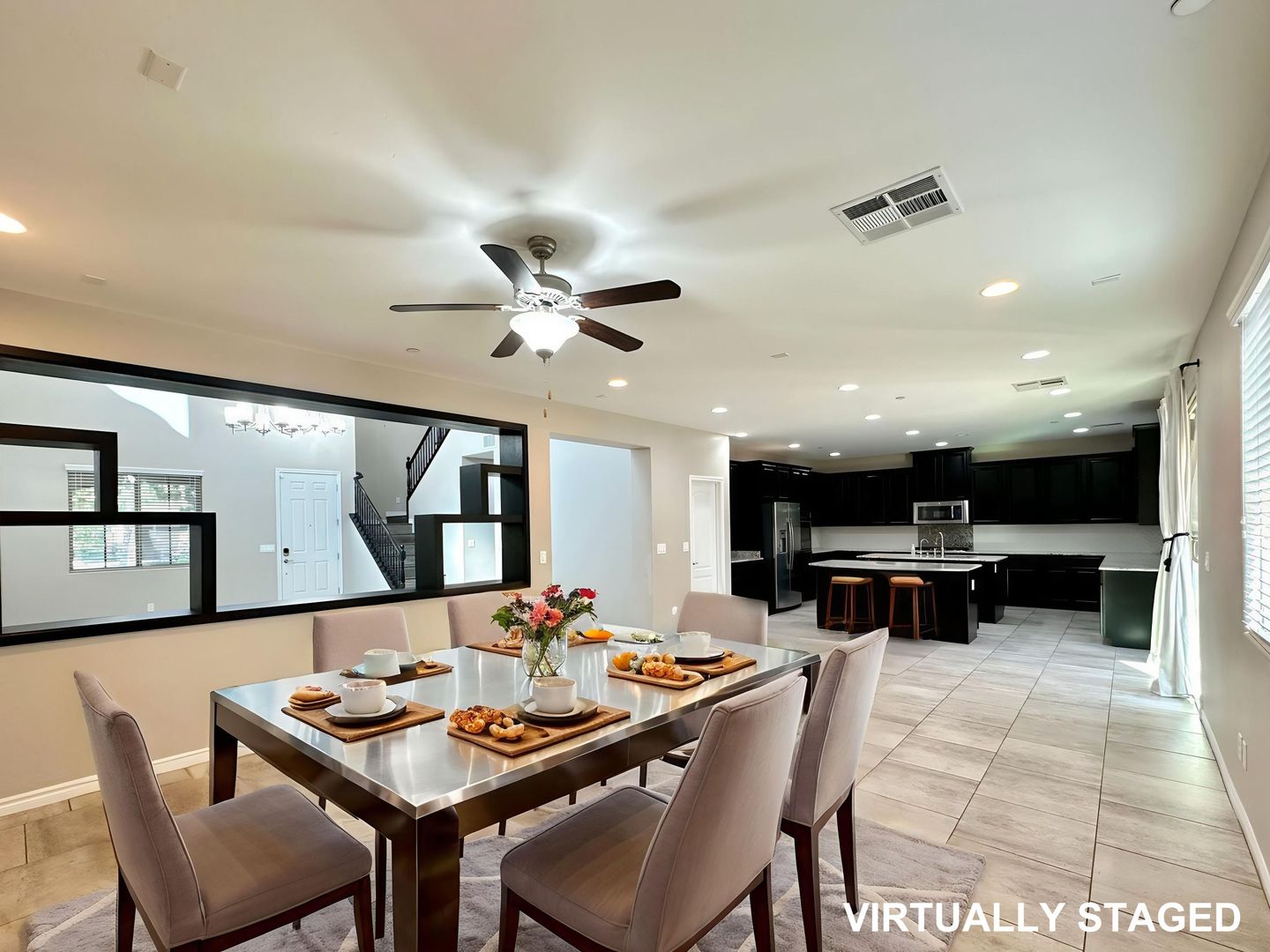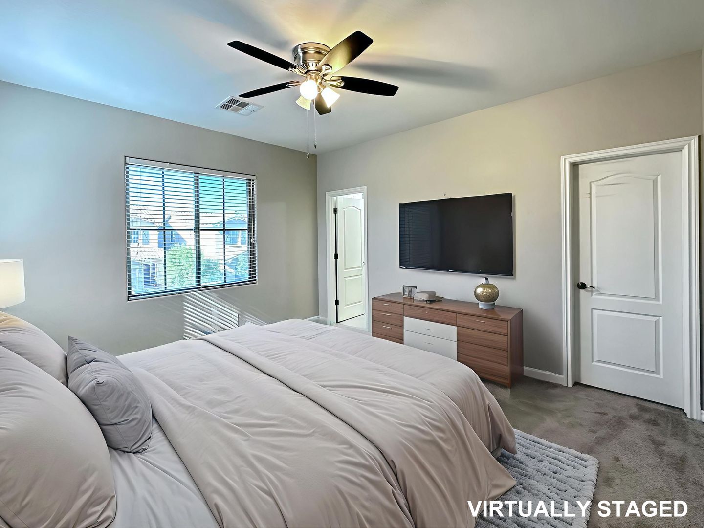 Beautiful 2-story, 4-bedroom, 3-bathroom home in Henderson featuring a convenient downstairs bedroom and 3/4 bath. Enjoy ceiling fans in every room and a spacious kitchen with double islands. Tile flooring runs throughout the downstairs, with carpet in the bedrooms and vinyl on the upper level. The home also includes a loft and an upstairs patio. Community amenities include a pool, basketball court, and playground. Price includes $25 for trash.
