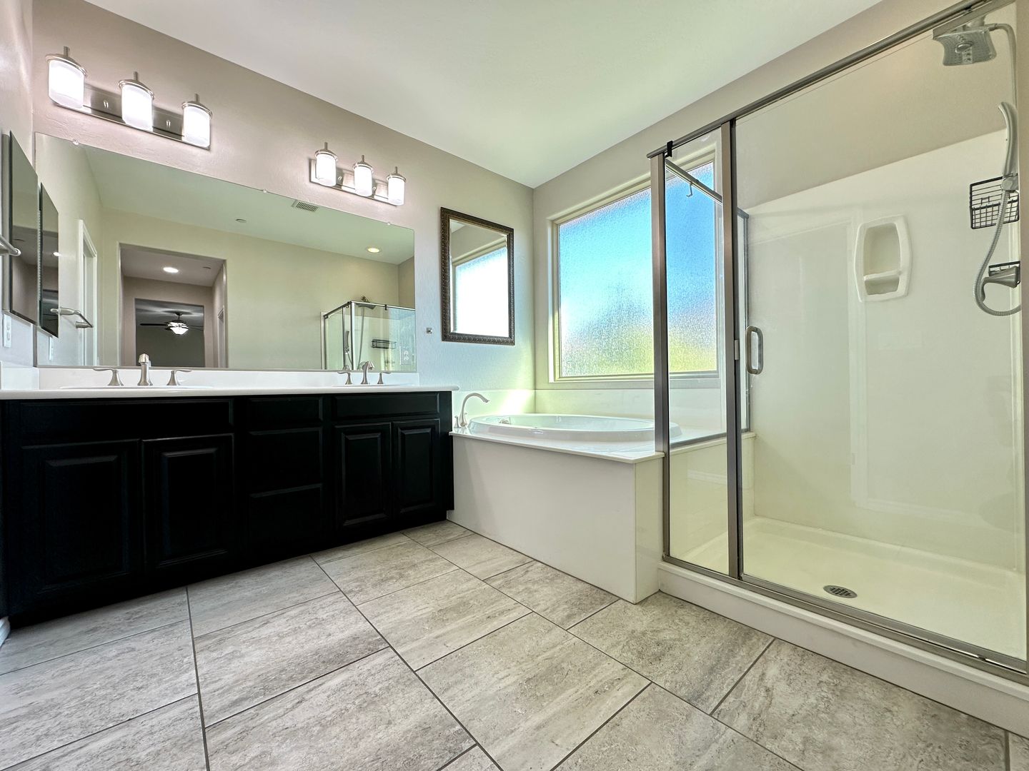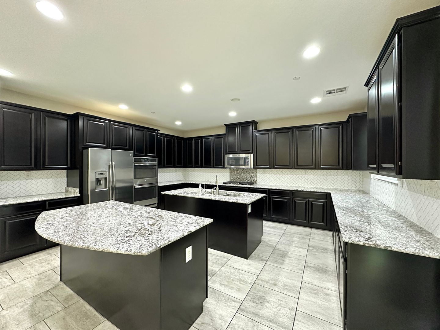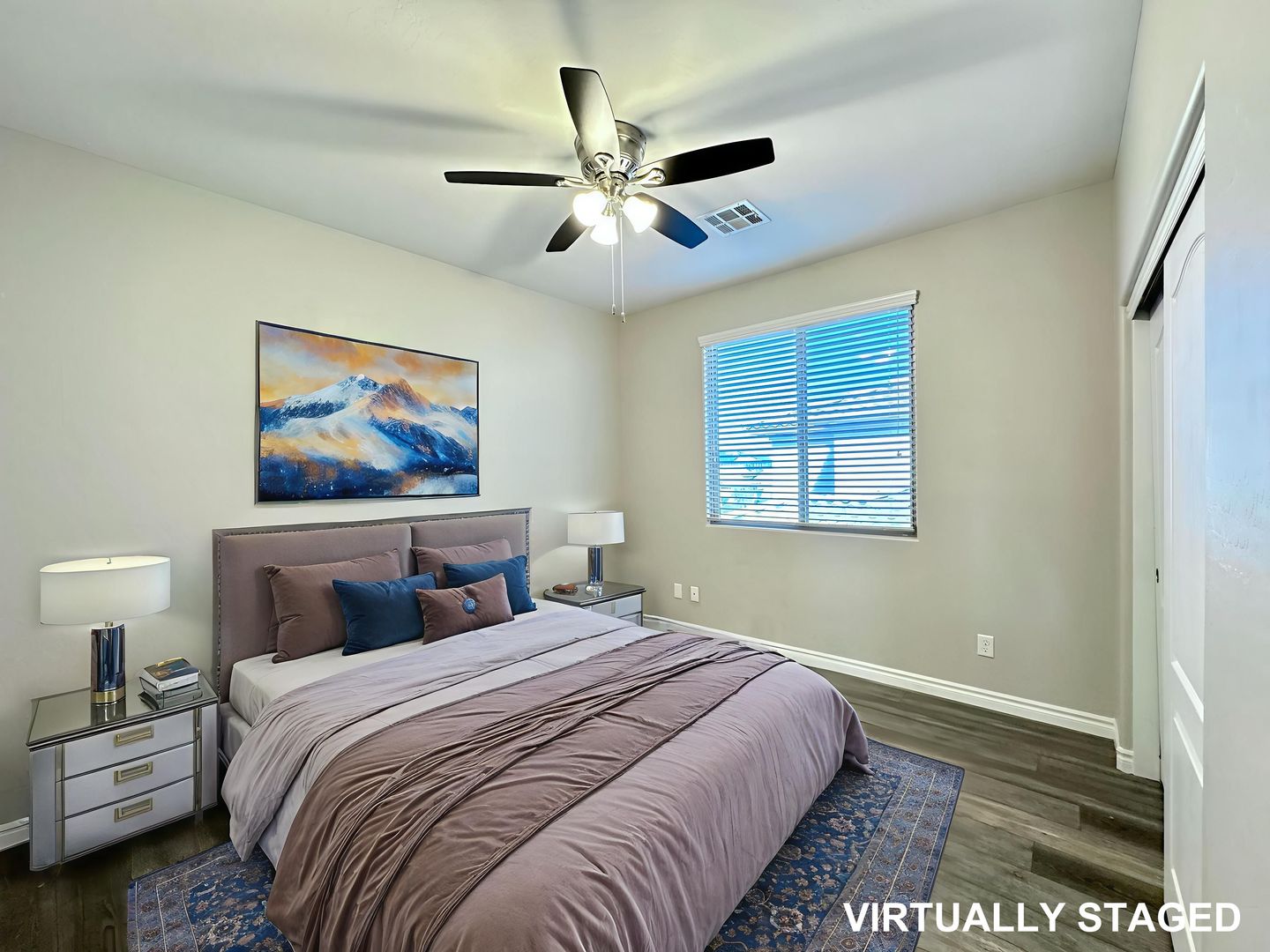 Beautiful 2-story, 4-bedroom, 3-bathroom home in Henderson featuring a convenient downstairs bedroom and 3/4 bath. Enjoy ceiling fans in every room and a spacious kitchen with double islands. Tile flooring runs throughout the downstairs, with carpet in the bedrooms and vinyl on the upper level. The home also includes a loft and an upstairs patio. Community amenities include a pool, basketball court, and playground. Price includes $25 for trash.