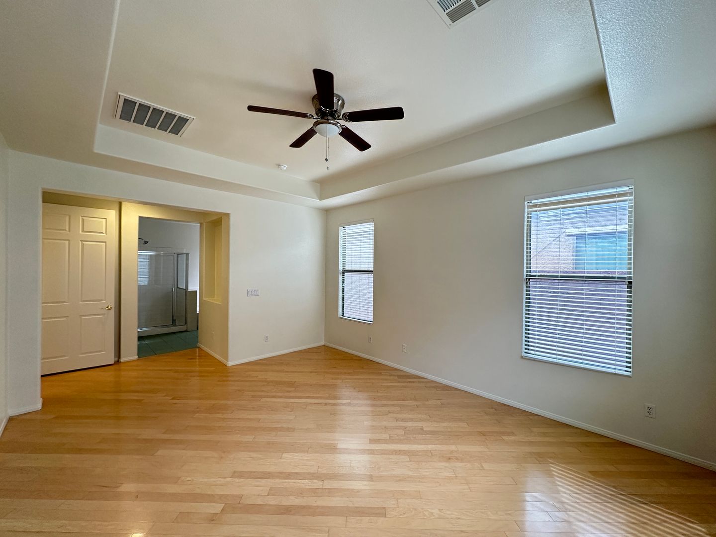 Fantastic location and beautiful home in the heart of Summerlin! Close to schools, dining, Red Rock Casino & Hotel, and Downtown Summerlin. Spacious floor plan with primary bedroom downstairs. New waterproof laminate flooring upstairs and fresh whole-house paint. Gourmet kitchen with granite countertops opens to a bright great room with soaring two-story ceilings and custom fireplace. Secondary bedrooms are separate with a versatile loft. The price includes $50 a month for Trash & Sewer.