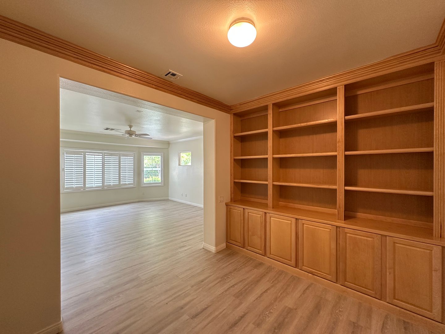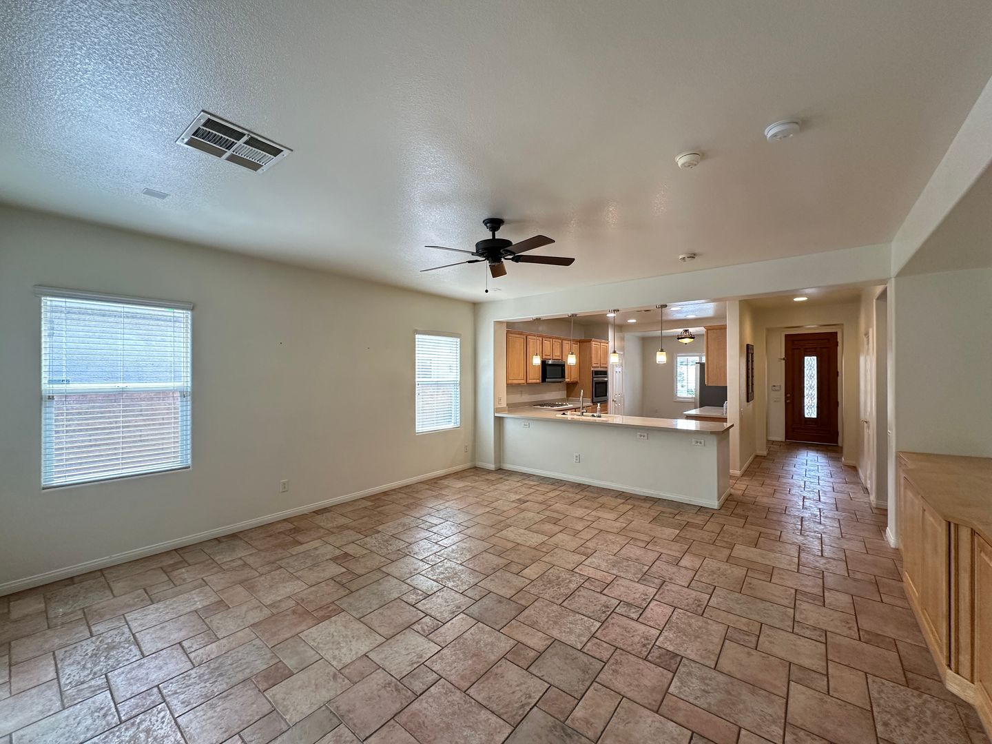 BEAUTIFUL SINGLE STORY HOME IN SUMMERLIN!! with custom tile flooring ***NO CARPET*** and an open-concept layout. Plantation shutters and ceiling fans throughout add style and comfort. Pre-wired for surround sound with a custom entertainment unit. The spacious primary bedroom features a private retreat with built-in bookshelf. Move-in ready and a must-see! The price includes $50 for Trash & Sewer.