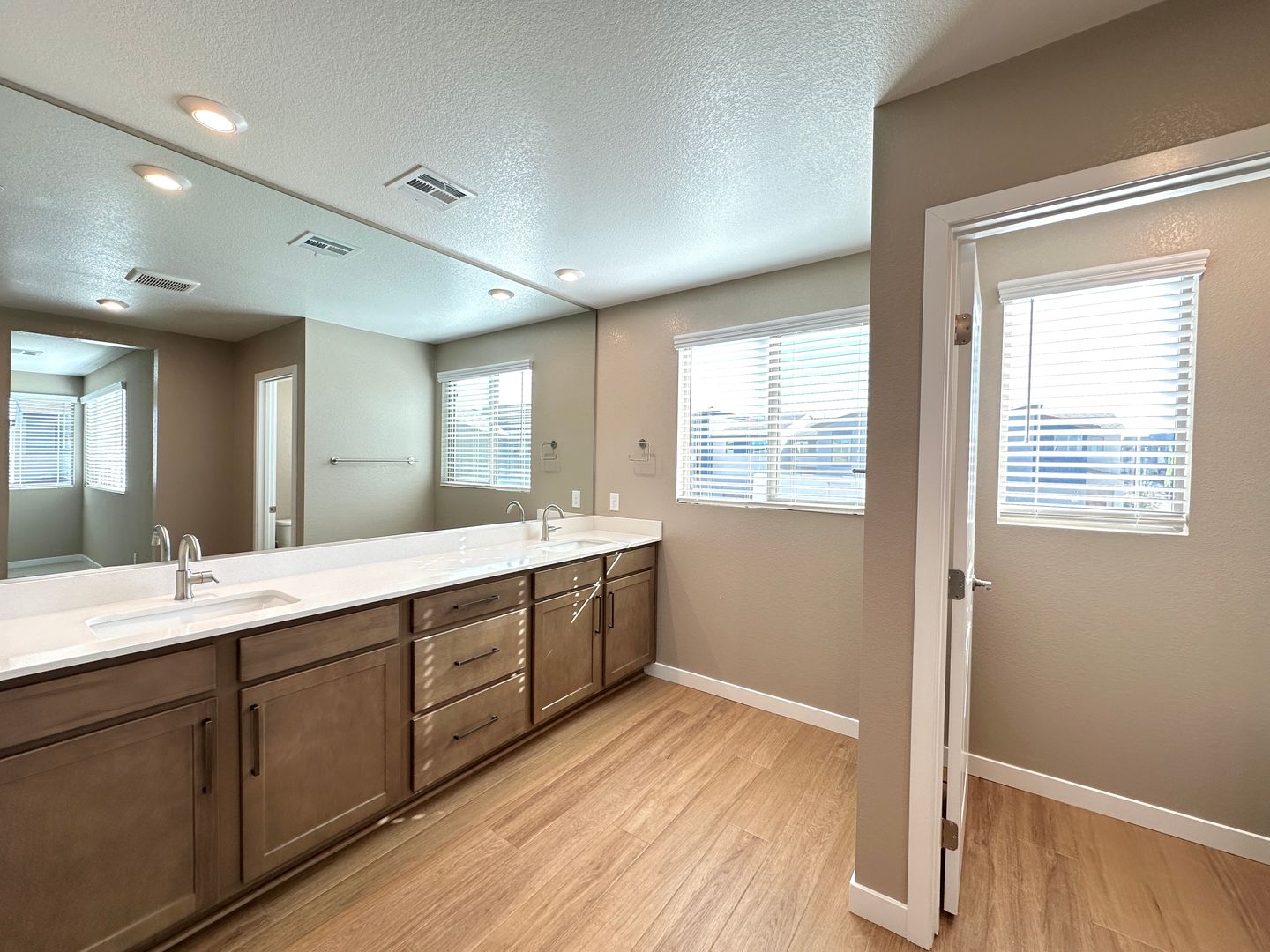 Beautiful modern brand new 2 story townhome in highly sought after Inspirada. The spacious kitchen boasts a beautiful quartz island and countertops with stainless steel appliances. Upstairs boasts spacious rooms, laundry room, and primary bedroom with in-suite bath boasting double sinks with lovely hardware. Price includes $25 monthly fee for trash.